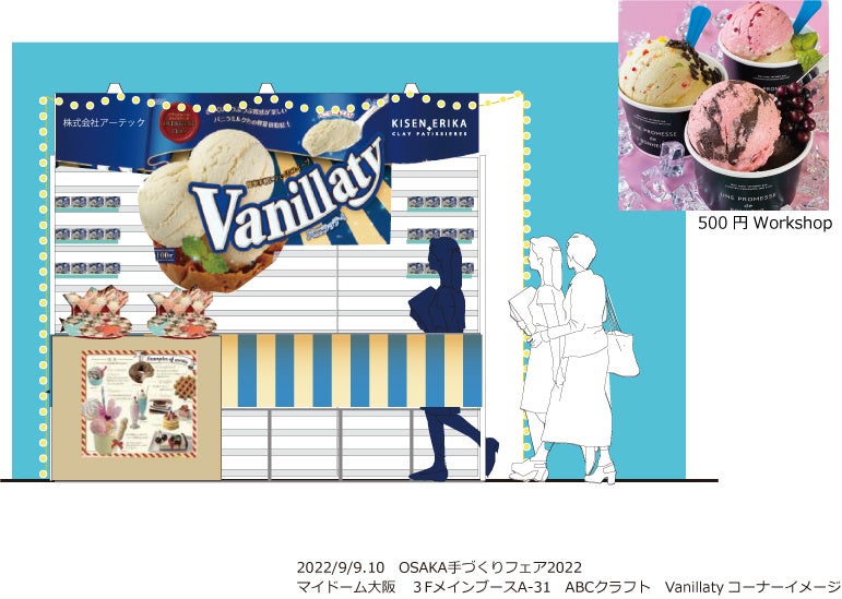 3年ぶりに開催される来場者3万人を超える西日本最大級の手芸・クラフト・ホビーの祭典「OSAKA手づくりフェア」では、発売前のバニラッティを使ったダブルカップアイスづくり体験を各日30分×12回(税込500円)を開催。バニラッティで制作したリアルで美味しそうなフェイクスイーツの作品展示も行います(入場料:無料)。
