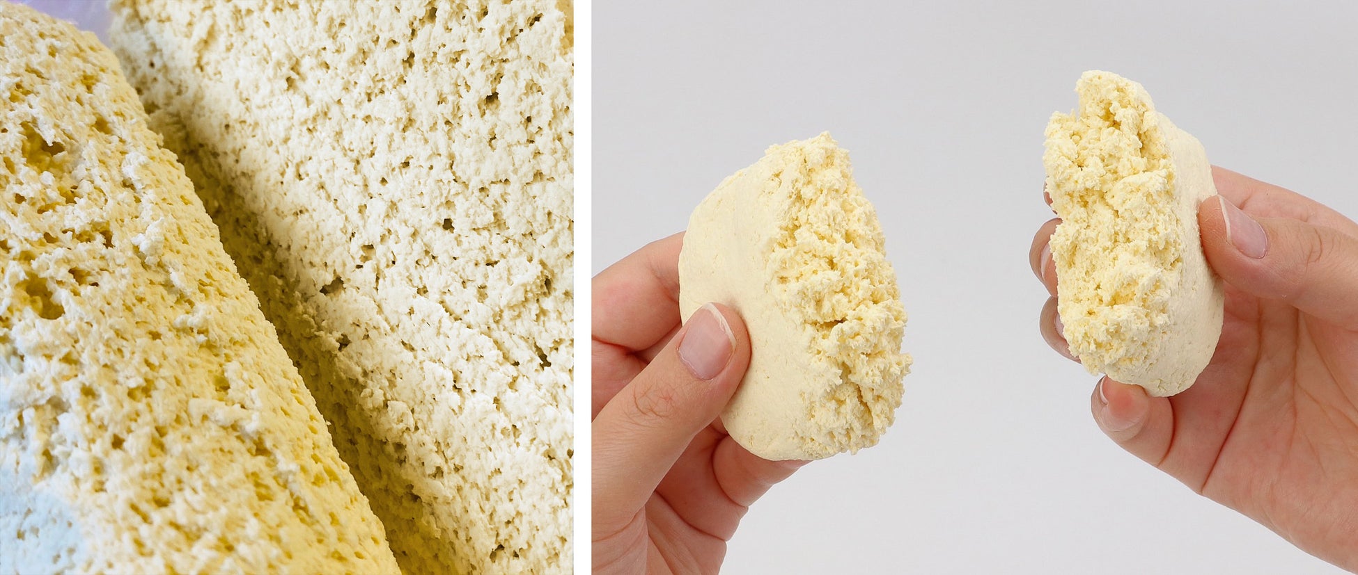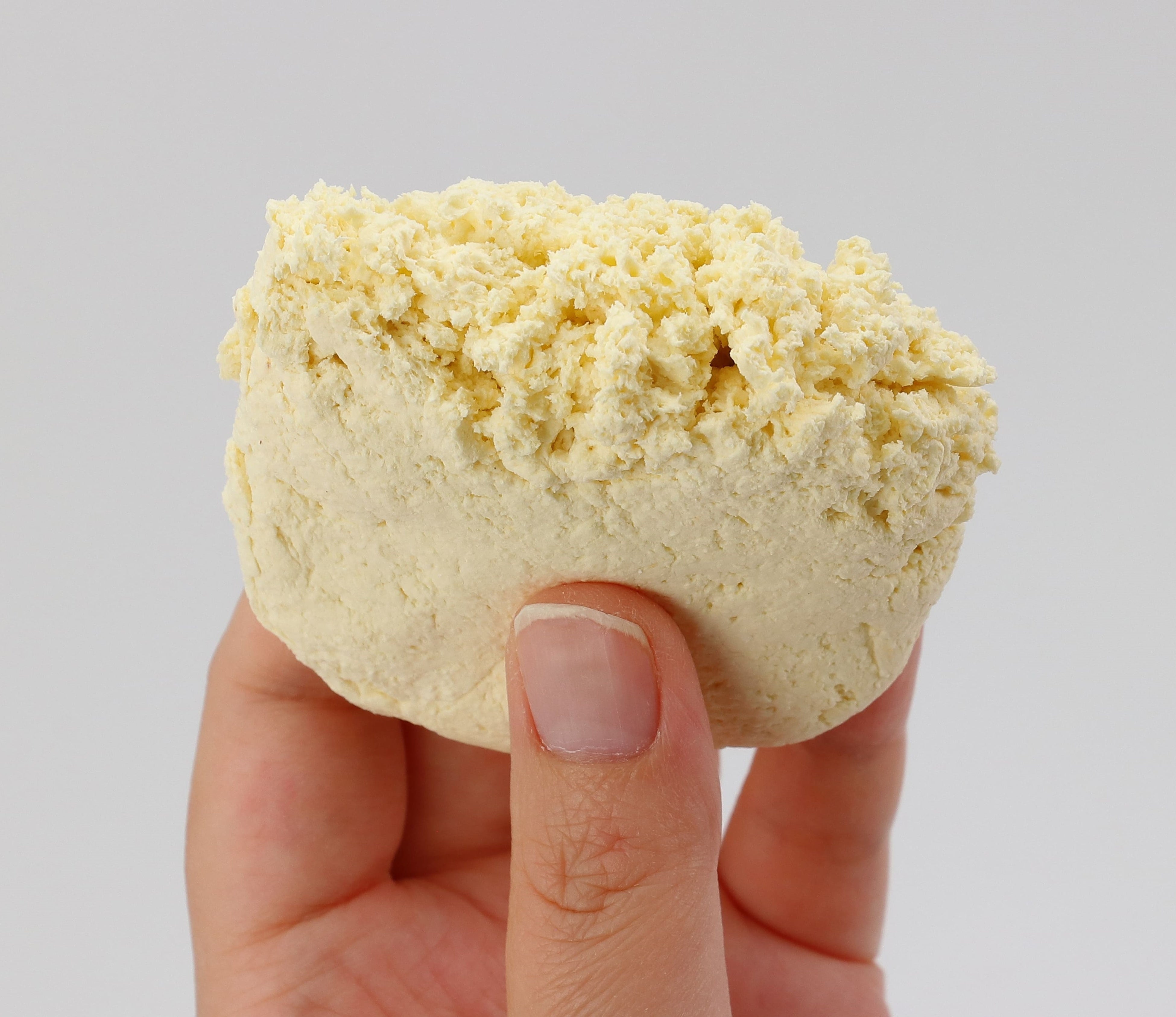 バニラミルク色の優しい色味付きで、カットすればスポンジケーキのような断面が出来上がります。