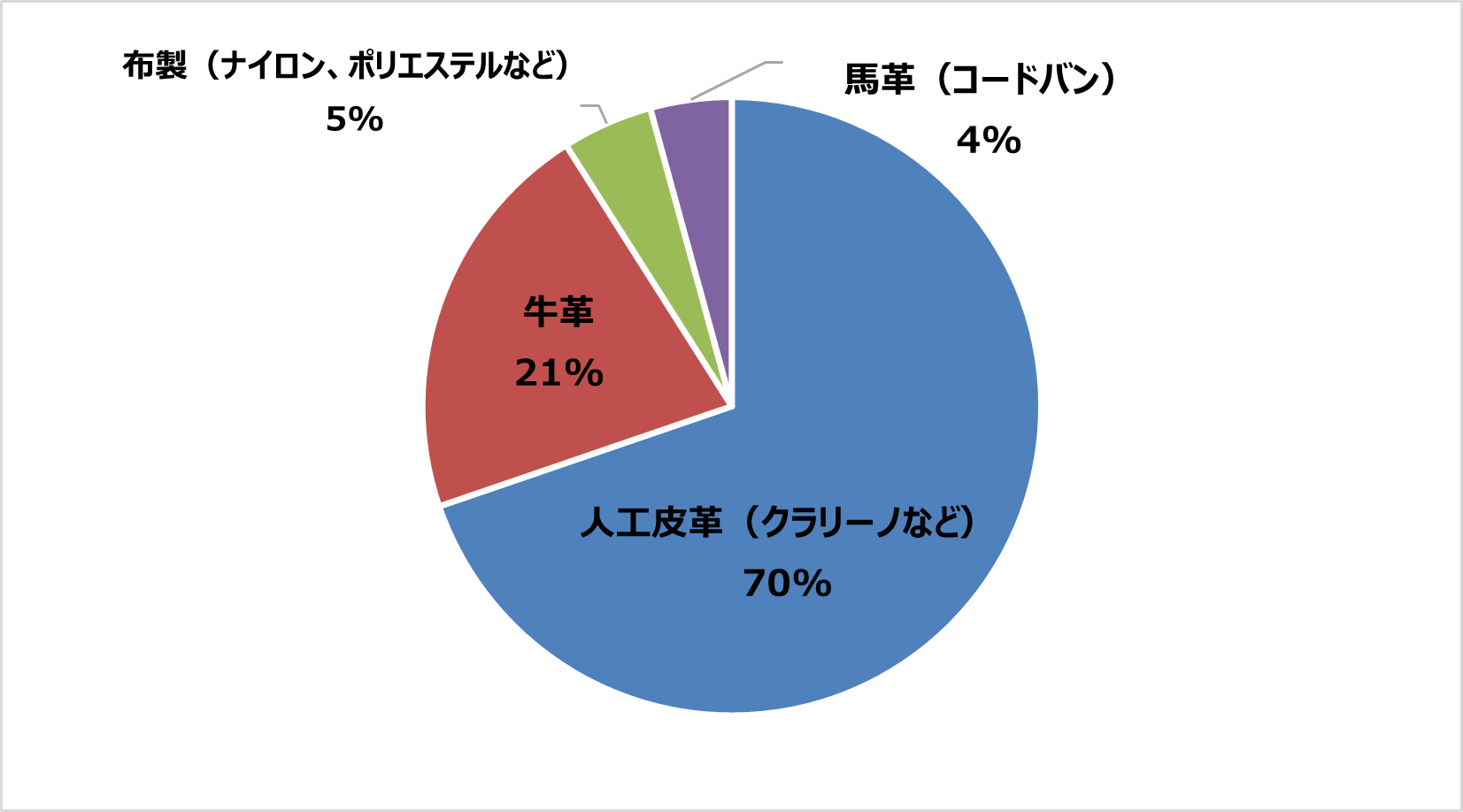 素材は人工皮革(クラリーノなど)が70%を占めています。