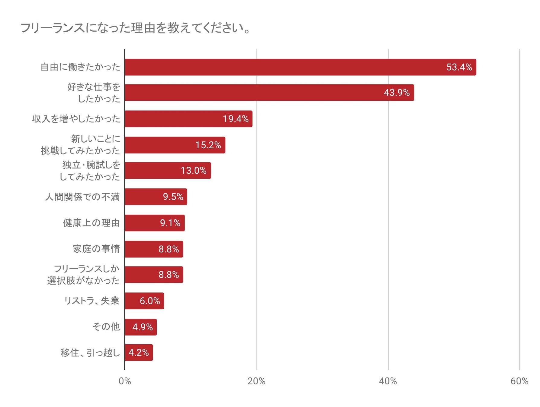 - フリーランスになった理由として、約1割が「フリーランスしか選択肢がなかった」と回答