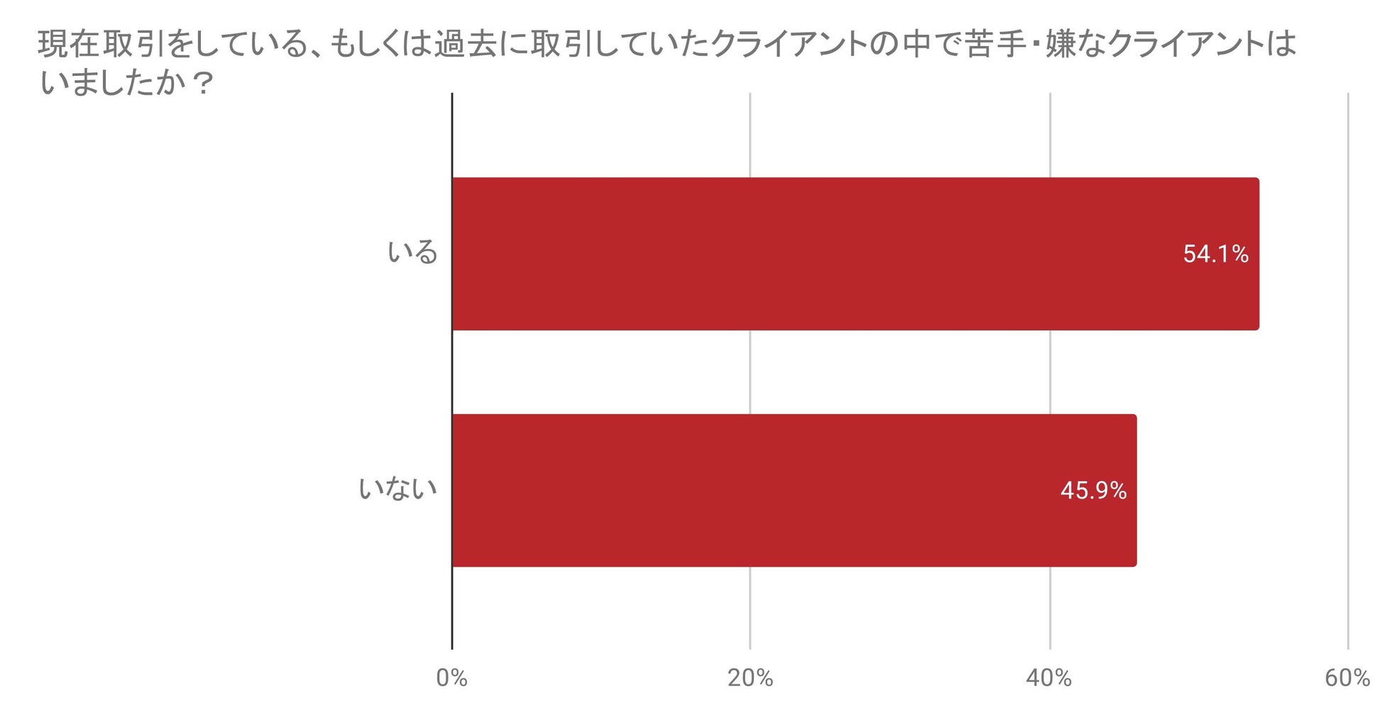 - フリーランスの54%が、「苦手なクライアントがいる」と回答