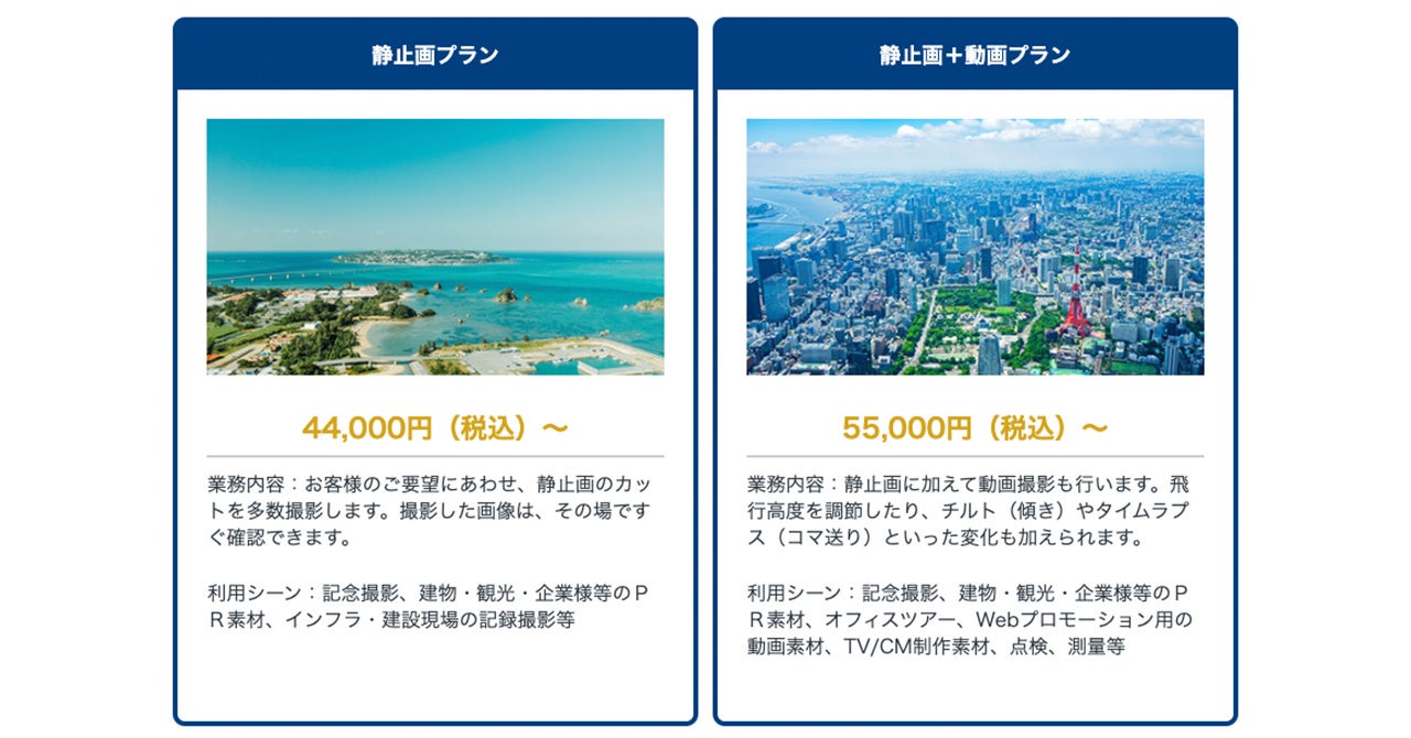 ・ドローン撮影 料金プラン 【静止画撮影を含む】