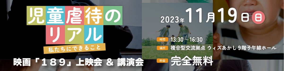 認定NPO法人兵庫子ども支援団体(所在地:兵庫県明石市、代表理事:多田実乘、以下「当法人」という)は、団体設立10周年を記念して、講演会「子どもの権利って?〜みんなで考える子どもの権利〜」を2023年10月に、映画上映会及び講演会「児童虐待のリアル 〜私たちにできること〜」を2023年11月に、それぞれ複合型交流拠点ウィズあかし(兵庫県明石市)で開催いたします。現在、それぞれの申込を受け付けております。