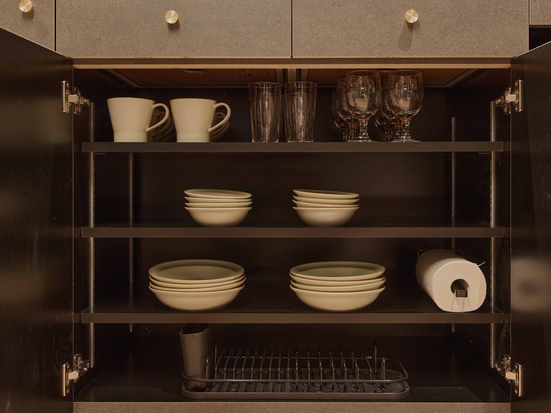全客室内にリビング、ダイニング、キッチン、洗面スペースがあり、各エリアには「暮らし」に必要なアイテムをひと通りご用意しています。