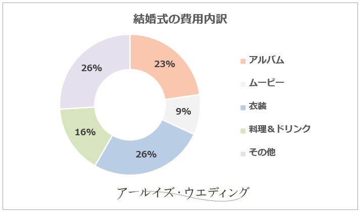 さらに、衣装(ウエディングドレス・タキシード・衣装小物)の平均費用は500,381円という結果でした。