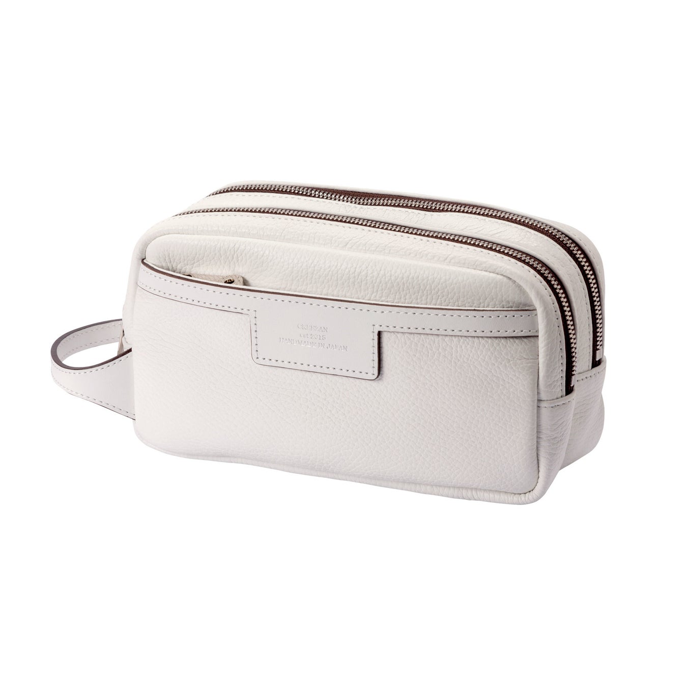ブランド名を刻印したメタルパーツは、丁寧に高い精度で加工された高級感のあるオリジナルパーツ。 ホワイトのレザーと相まってバッグを際立たせます。ファスナーは、YKK社製でファスナーの貴婦人とも言われるEXCELLA(エクセラ:エレメントひとつひとつの全面に入念な磨きをかけた滑らかさが特徴)を使用しています。シュリンクレザーには強撥水加工を施し雨や汚れにも強く丈夫です。