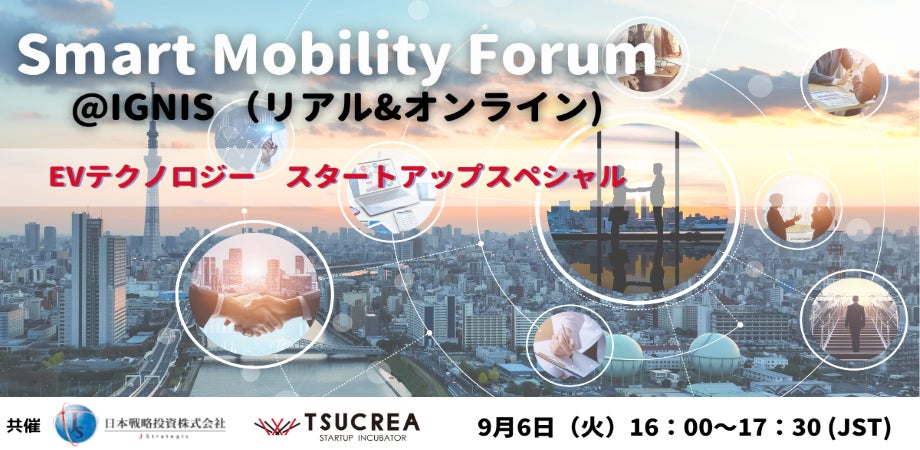 株式会社ツクリエ(本社:東京都千代田区 代表取締役:鈴木英樹 以下、ツクリエ)は日本戦略投資株式会社と共催し、「スマートモビリティフォーラム/EVテクノロジー・スタートアップスペシャル」を9月6日(火)に開催します。今回はドイツと日本のスタートアップの連携によるモビリティ分野におけるイノベーションをテーマに、最新のEVテクノロジーを持つ各社からのプレゼンテーションとトークセッションを公開します。グローバル版の開催は今回で第4回目となる本イベントは毎回多くの方にご参加いただき、業界でも注目度の高いイベントです。モビリティ分野のスタートアップの方、関連企業のご担当者をはじめとする、モビリティの未来を真剣に考える方におすすめのイベントです。