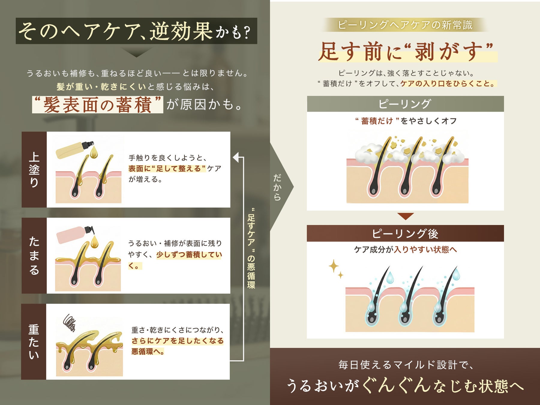 足し算ケアだけでは仕上がりが安定しにくいと感じる層に向けた、別アプローチのヘアケア習慣としてピーリングシリーズを提案します。