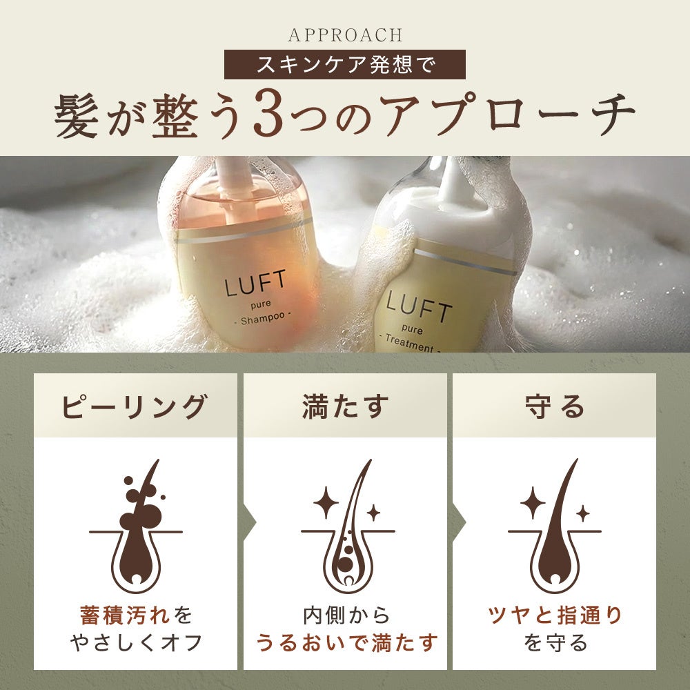 業界初* “髪表面の蓄積汚れをオフする” ピーリングシャンプーがLUFTから新登場