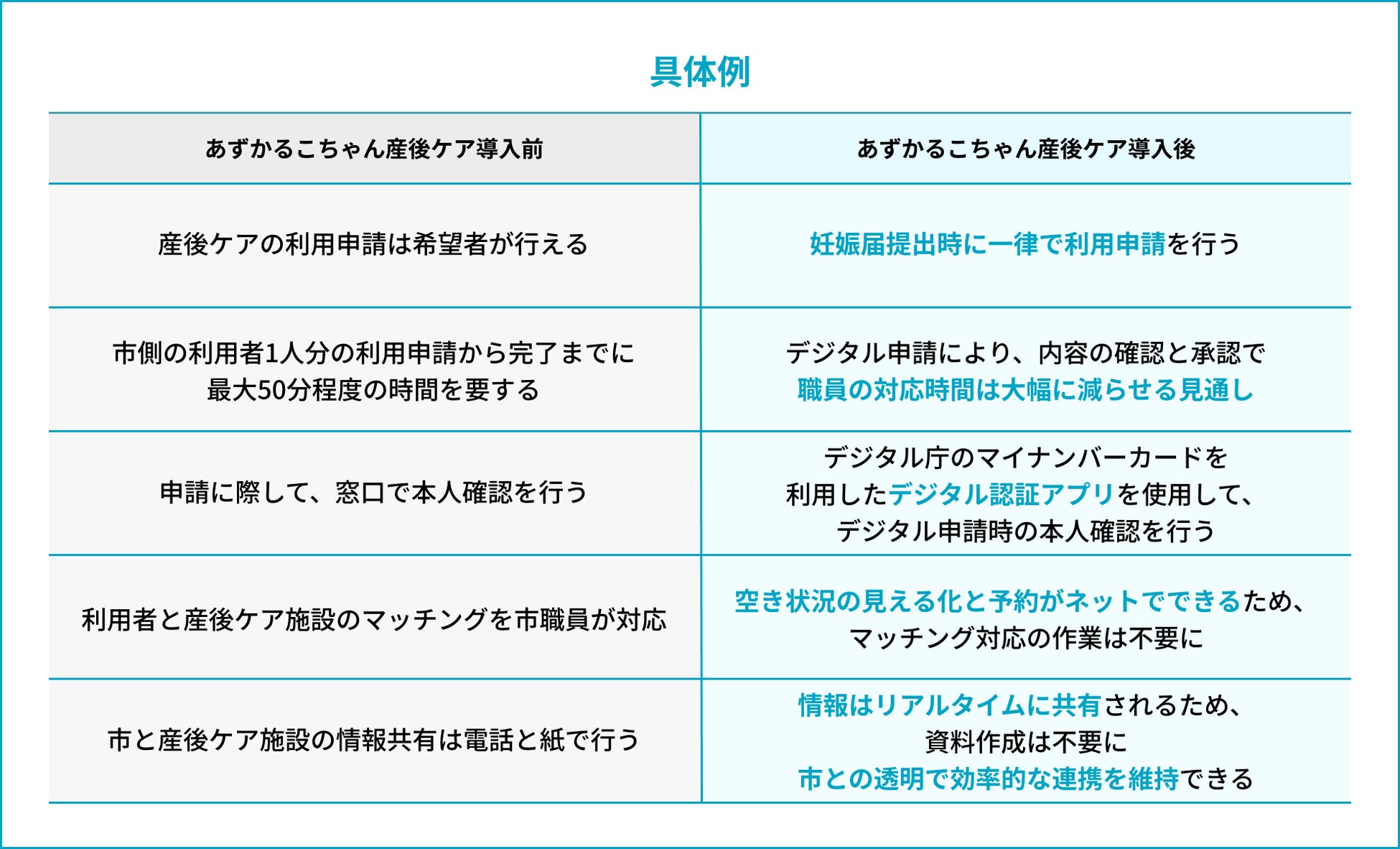 この取り組みを通じて、利用者が産後ケア事業にアクセスする手段を向上させ、登録者数や利用者数の増加を目指します。また、DXの取り組みを推進するために必要な留意点等の横展開をすることで、全国の地方公共団体等のDX、BPR※1を推進しています。
