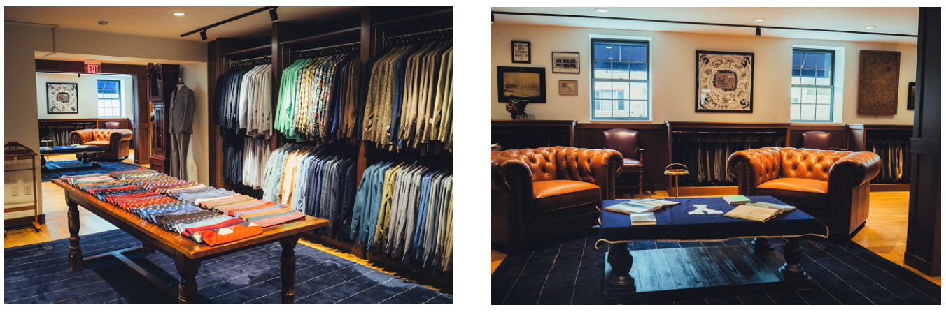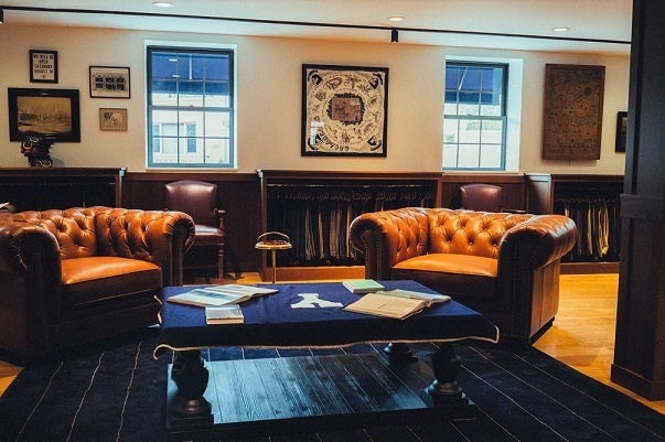 フルラインアイテムを展開する同ショップの1階フロアでは、ネイビーブレザーや、インディアマドラスアイテム、オックスフォード生地のボタンダウンシャツ、シャギードッグシェットランドセーターなど、創業当時からの定番アイテムに加え、新ラインの「J.PRESS PENNANT LABEL(J.プレス ペナント レーベル)」を展開します。「J.PRESS PENNANT LABEL」は、アイビーリーグの公式ライセンスウェアや、フィット感のあるカジュアルウェアをラインアップし、ブランドの入門編として、また、クラシックなヘリテージコレクションを補うレーベルとして提案します。2階フロアは、レザーチェアを配したクラブラウンジのような心地よい、くつろぎの空間のなか、テーラードクロージングやカスタムオーダースーツ、オーダーメイドシャツを提案します。