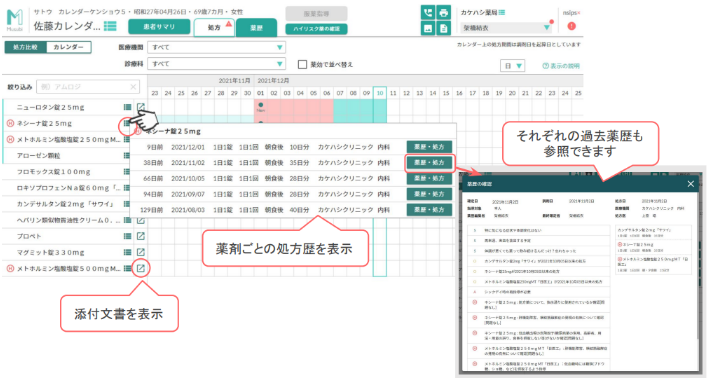 特徴② 薬剤ごとに、過去の処方歴や薬歴を参照できる