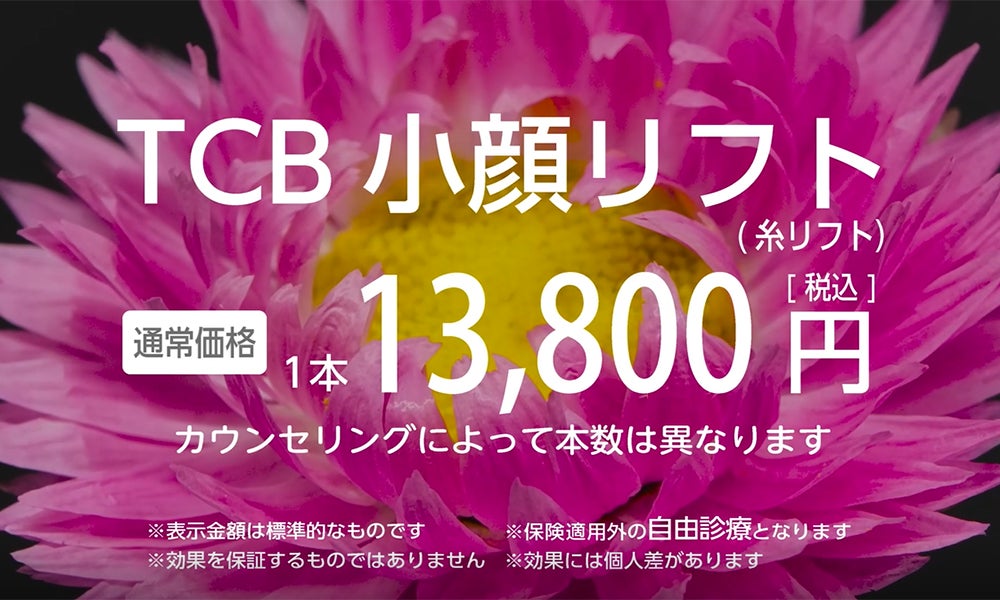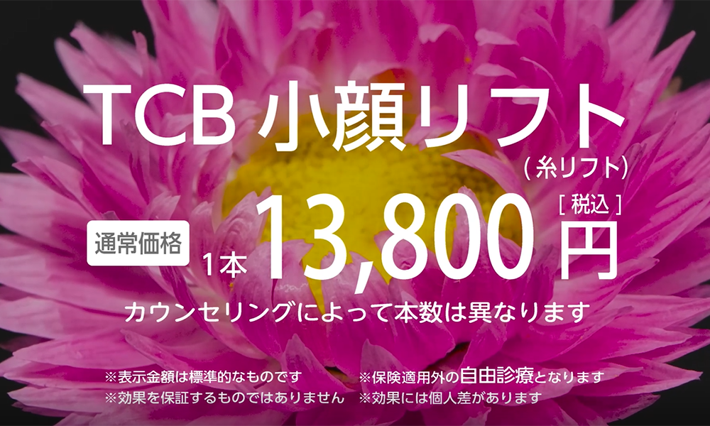 詳細はTCB公式サイト「TCB小顔リフト(輪郭小顔糸リフト)」ページをご覧ください。