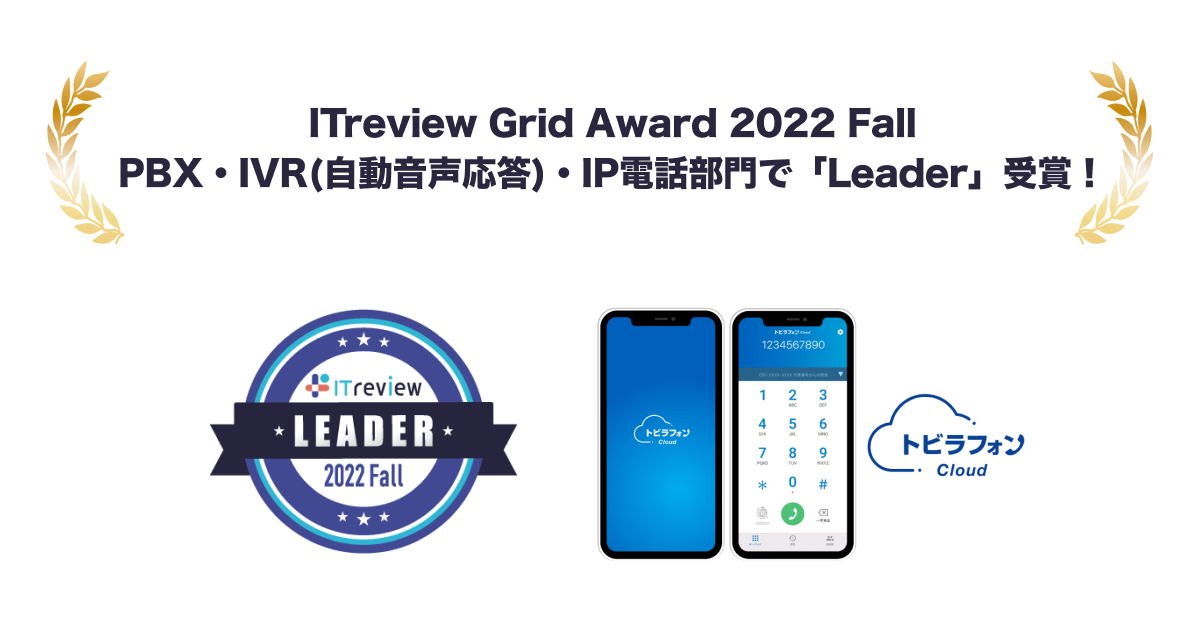 「トビラフォン Cloud」が、ITreview Grid Award 2022 FallのPBX・IVR(自動音声応答)・IP電話の3部門で「Leader」を3期連続受賞
