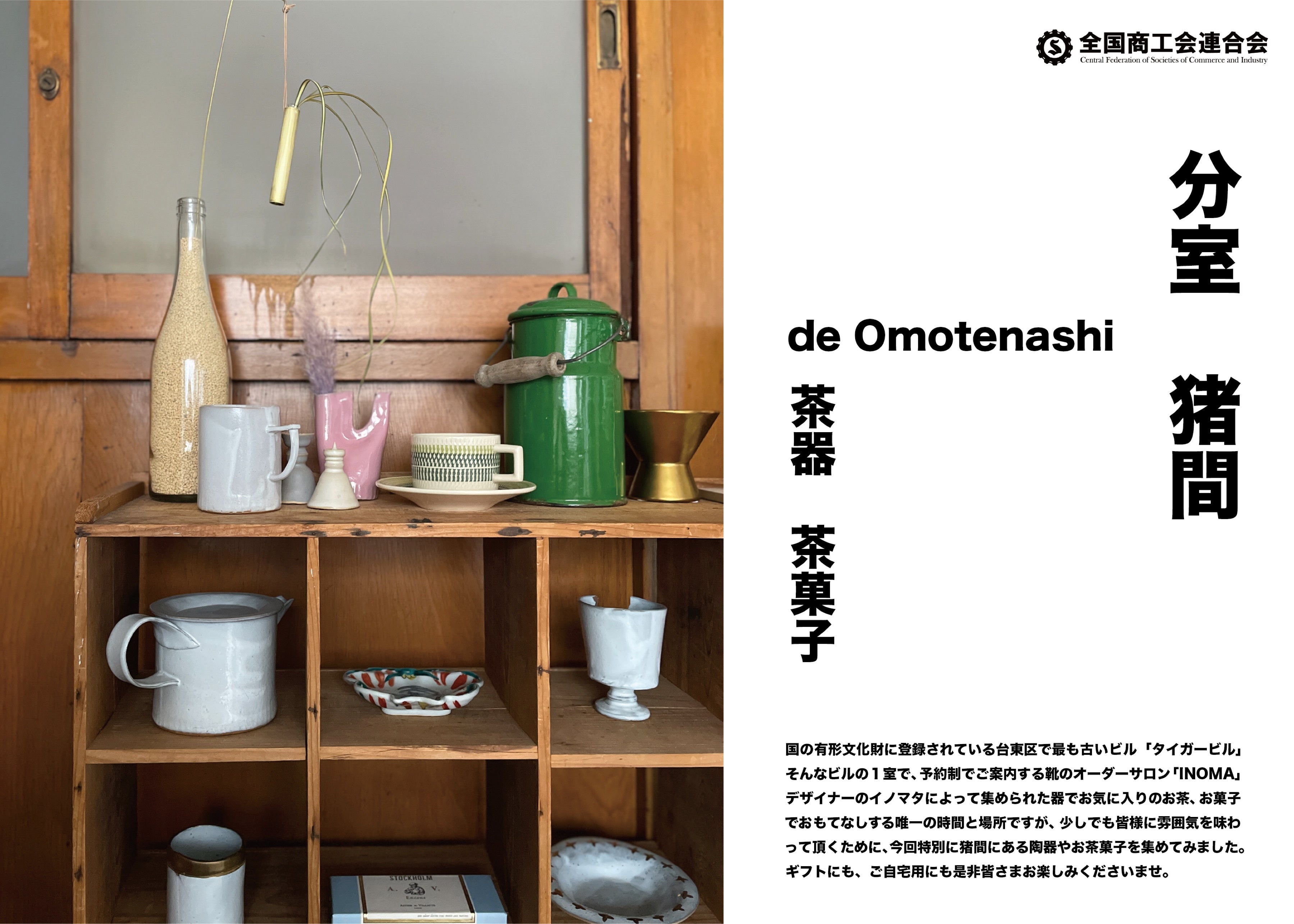 全国商工会連合会(所在地:東京都千代田区、会長:森 義久)と株式会社スタジオナンバーファイブ(所在地:東京都台東区、代表取締役:猪俣 工)は2023年2月15日(水) ~ 2月21日(火)までジェイアール名古屋タカシマヤ4階にて"分室猪間 de Omotenashi"を開催しております。