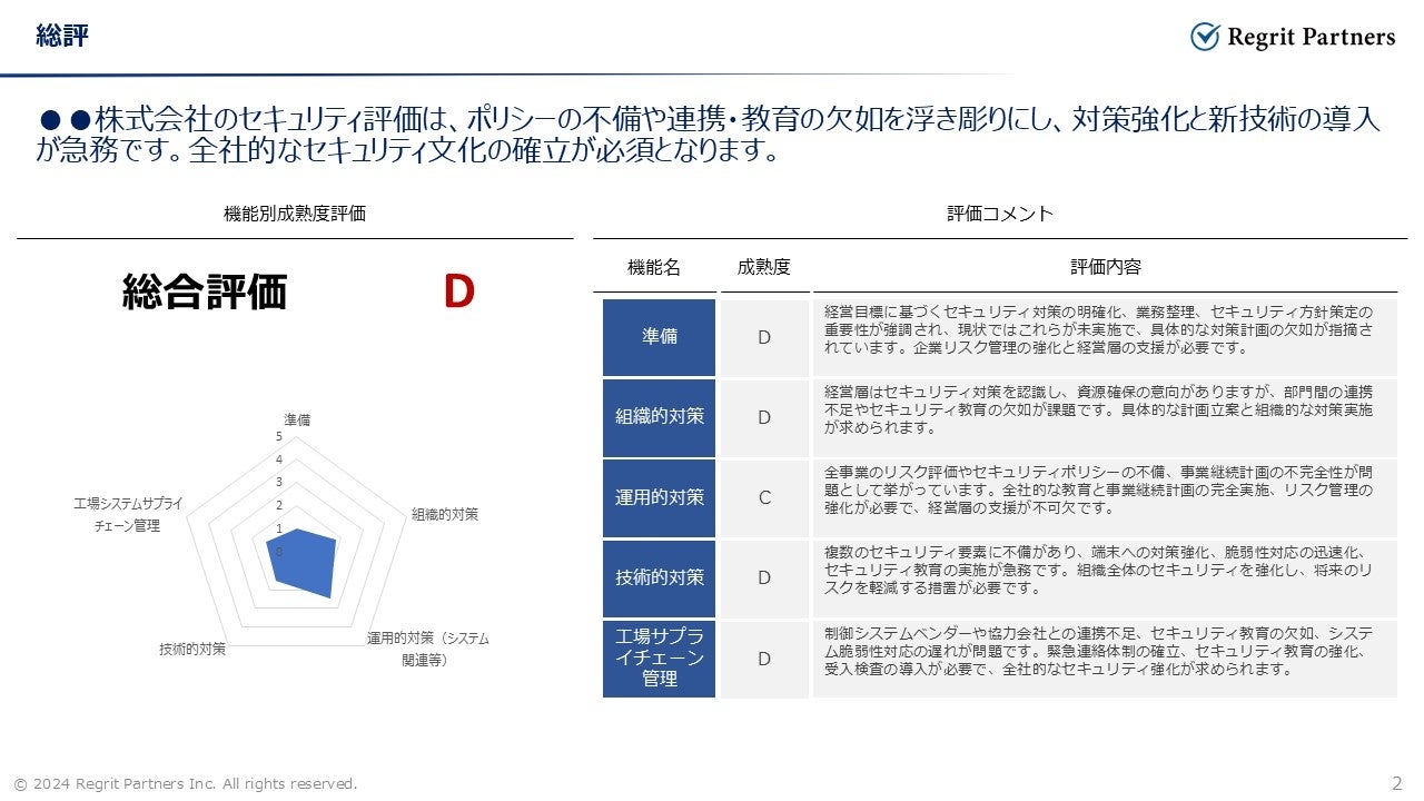 株式会社Re-grit Partners(本社:東京都千代田区紀尾井町1-3 東京ガーデンテラス紀尾井町 紀尾井タワー13階、代表:山木 智史、以下、「当社」)は、産業制御システムを対象とした「OTセキュリティアセスメントサービス」の提供を開始します。