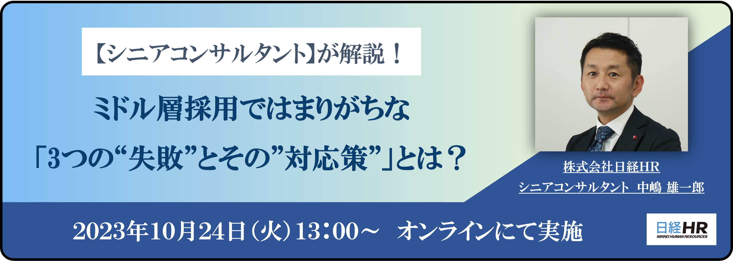《10月24日(火)開催》無料ウェビナーのご案内【中途採用のプロ】が解説!『ミドル層採用ではまりがちな3つの“失敗”とその”対応策”』とは?