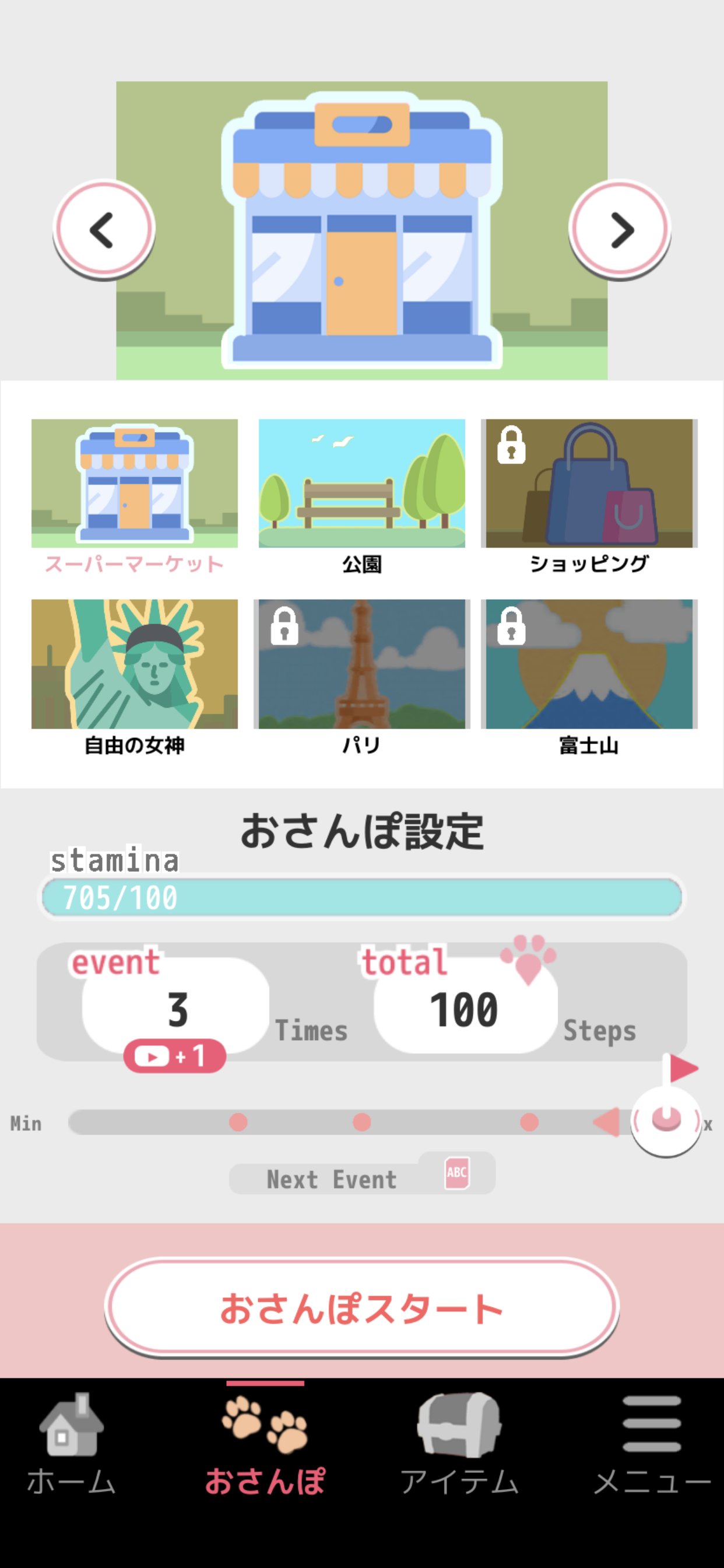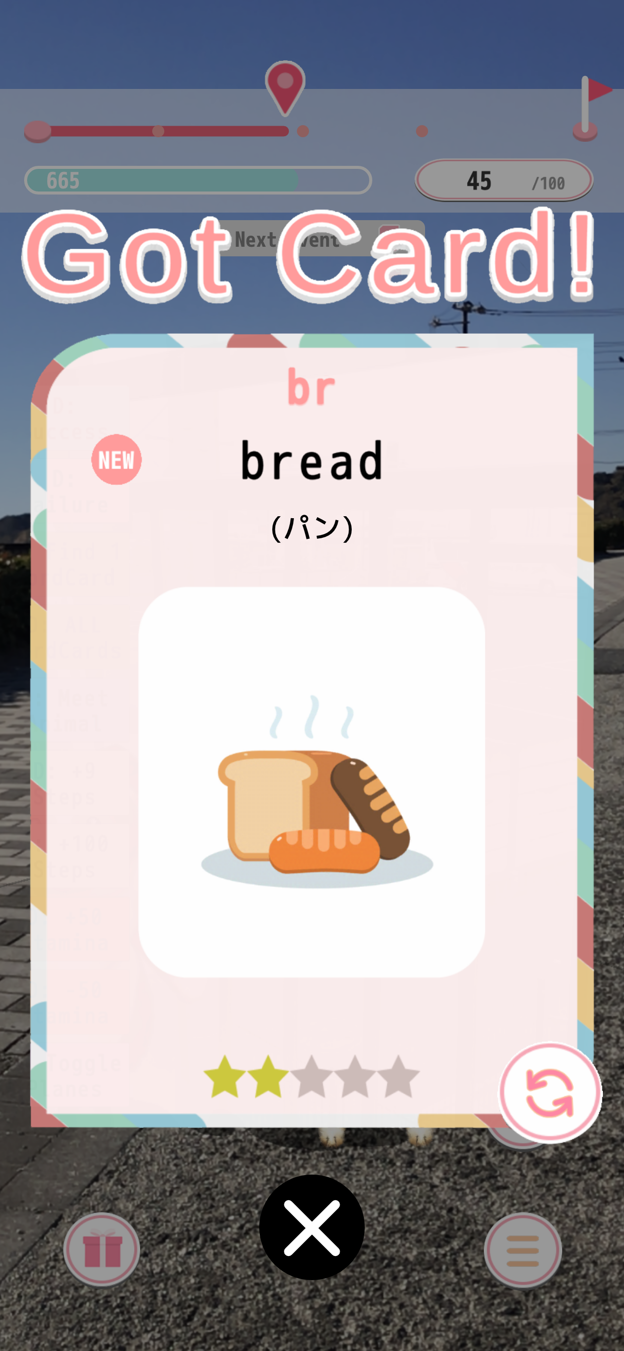 ゲーム開始時には「ことば」を持っていないペットと一緒に、自宅の部屋や公園などに落ちている「ことば」が書かれたカードを拾い集めます。