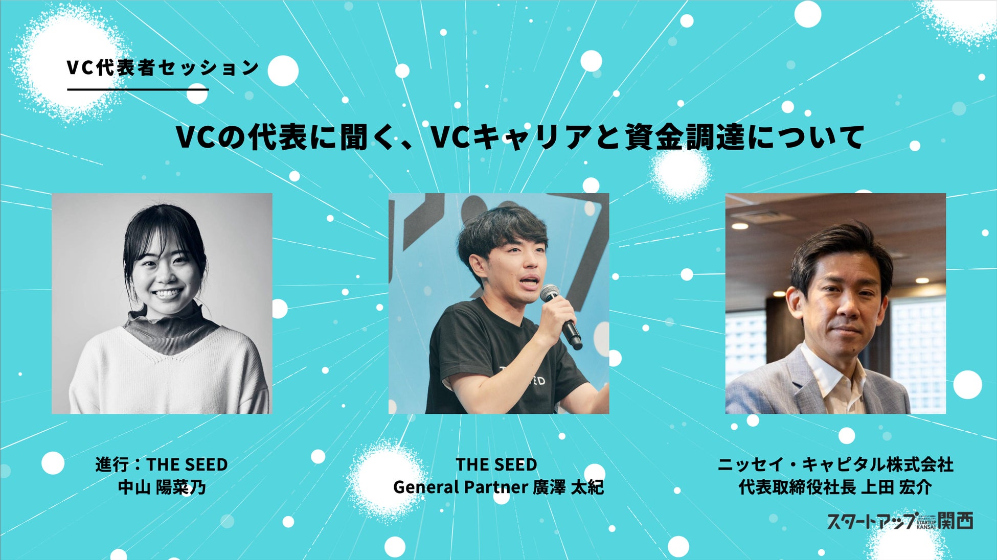 ニッセイ・キャピタル株式会社 代表取締役社長 上田 宏介氏とTHE SEED 廣澤 太紀が、VC業界でのキャリアパスやその魅力、資金調達の具体的な戦略についてお話しします。上田氏の豊富な経験に基づいた実践的なアドバイスと、廣澤の視点を通じて、VCを目指す方やスタートアップの資金調達を考えている方に向けた有益な情報を提供します。