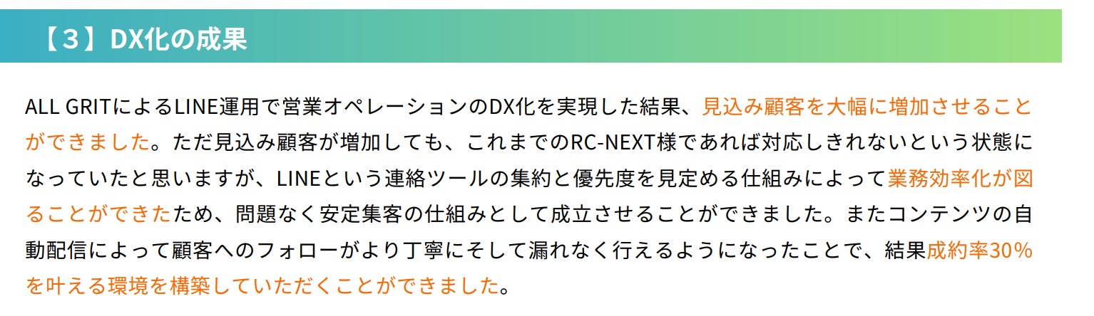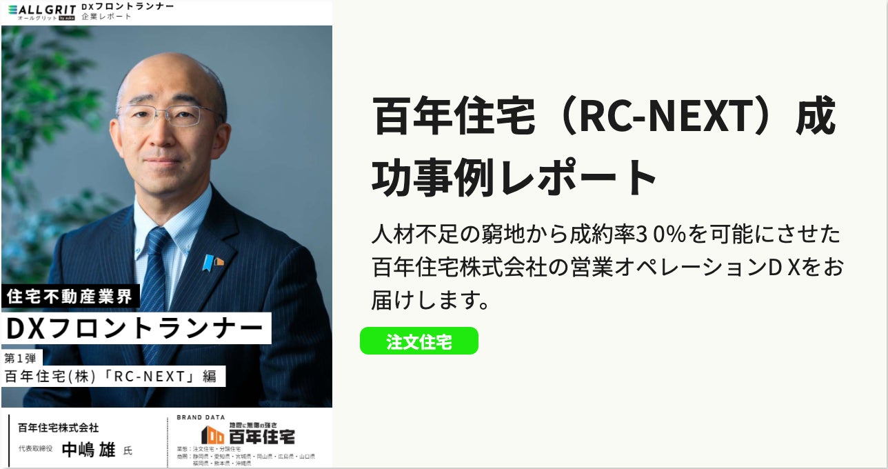 DXフロントランナー企業レポート第1弾『百年住宅(株)「RC-NEXT」編』を大公開 |住宅・不動産業界向けLINE運用ツール『ALL GRIT by auka(旧:auka来店プラス)』