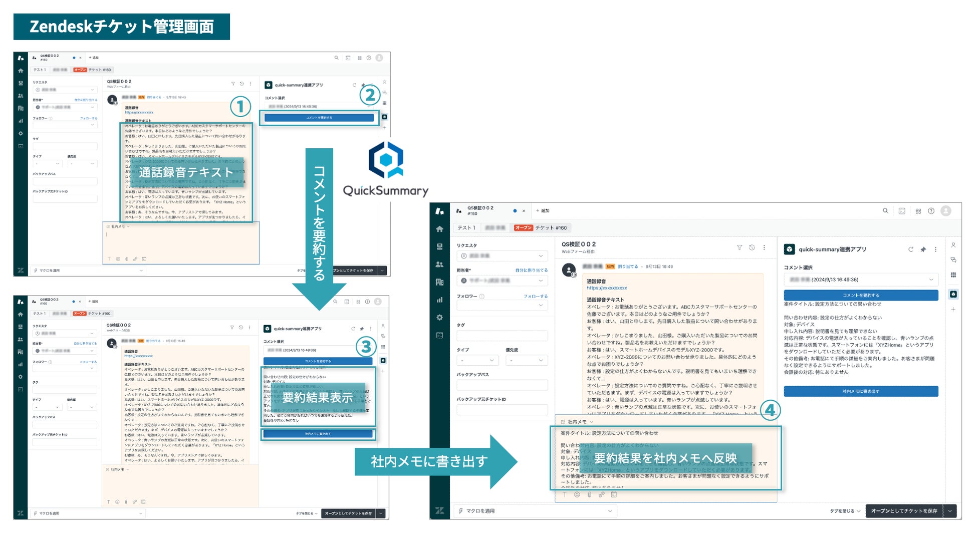 生成要約サービス「QuickSummary2.0」とCXプラットフォーム「Zendesk」が連携
