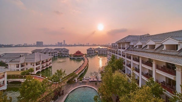 ノイバイ国際空港から車で約40分、ハノイ市内中心部からは車で約10分の西湖(タイ湖)畔に位置し、近代的なビルディングの本館(5階建て)と湖に浮かぶように建てられたパビリオン棟からなるラグジュアリーホテル。湖に突き出すように建っているパビリオンとそれを結ぶ桟橋が、水上コテージのようで印象的な造りになっています。