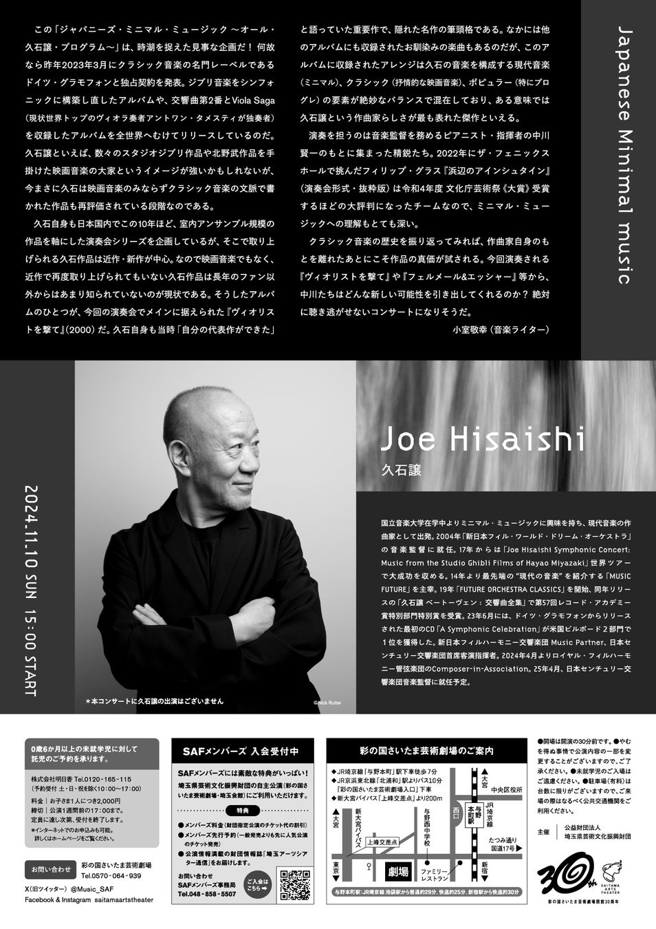 来る11月、プログラムをすべて「久石作品」で編んだ「ジャパニーズ・ミニマル・ミュージック ~オール・久石譲・プログラム~」を開催いたします。