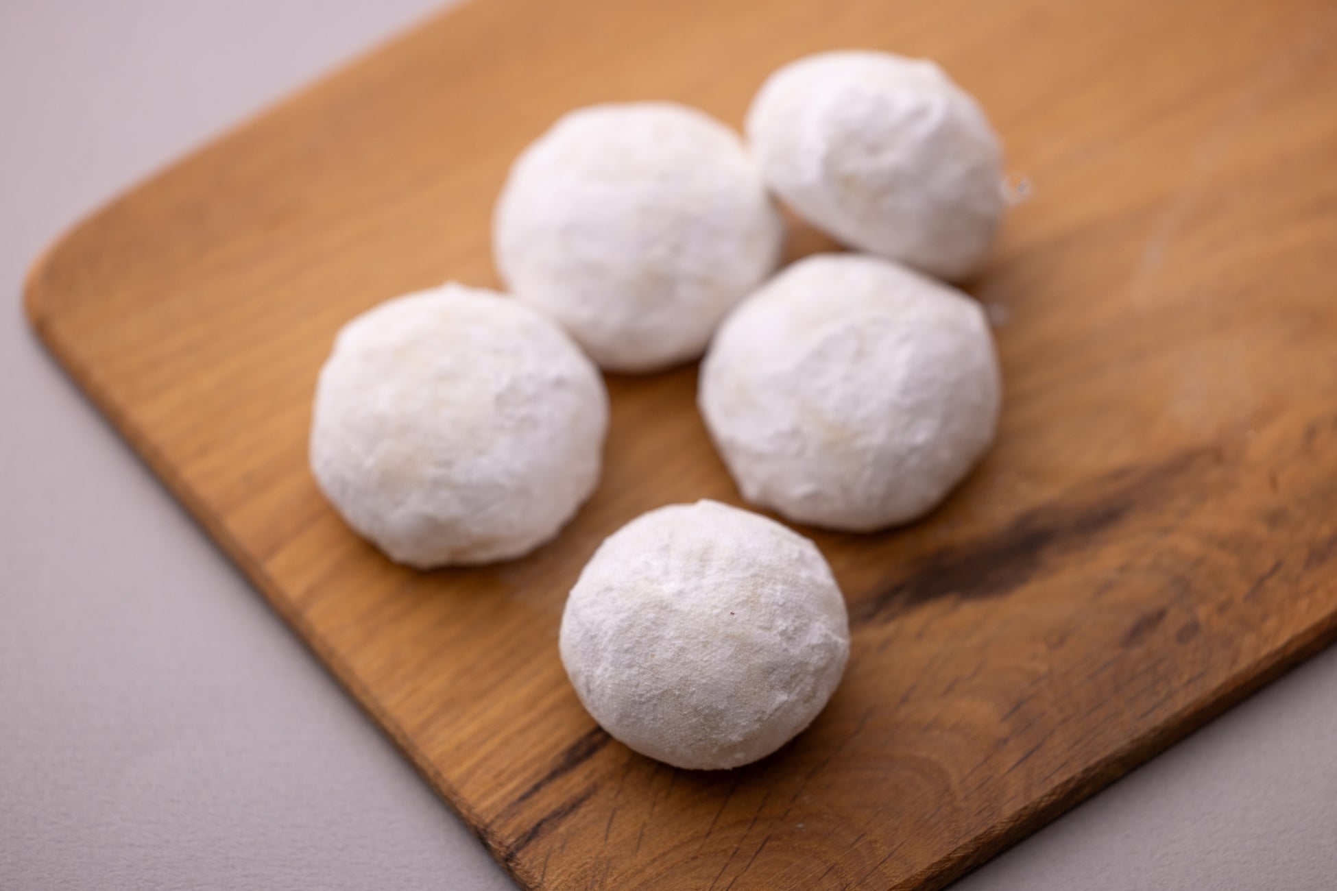 粉雪のように粉糖を表面にまぶした雪玉のような丸いバニラクッキー。サクサクとした食感とアーモンドとバニラの香りがお口いっぱいに広がります。クリスマスの雰囲気を楽しめる上品なお菓子です。