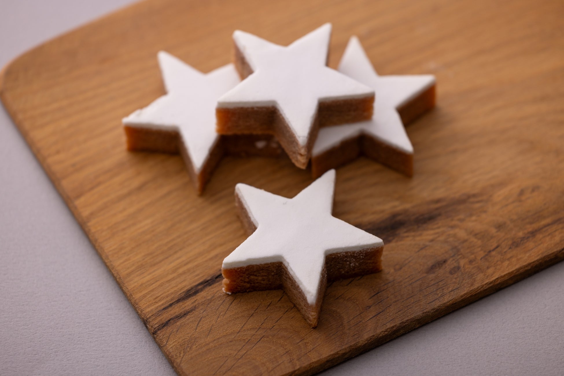 アーモンドパウダー、シナモンパウダーをハチミツで練ったクリスマスの伝統菓子。アイシングの甘みとシナモンの香りのバランスが秀悦な美しい星形のクッキーです。