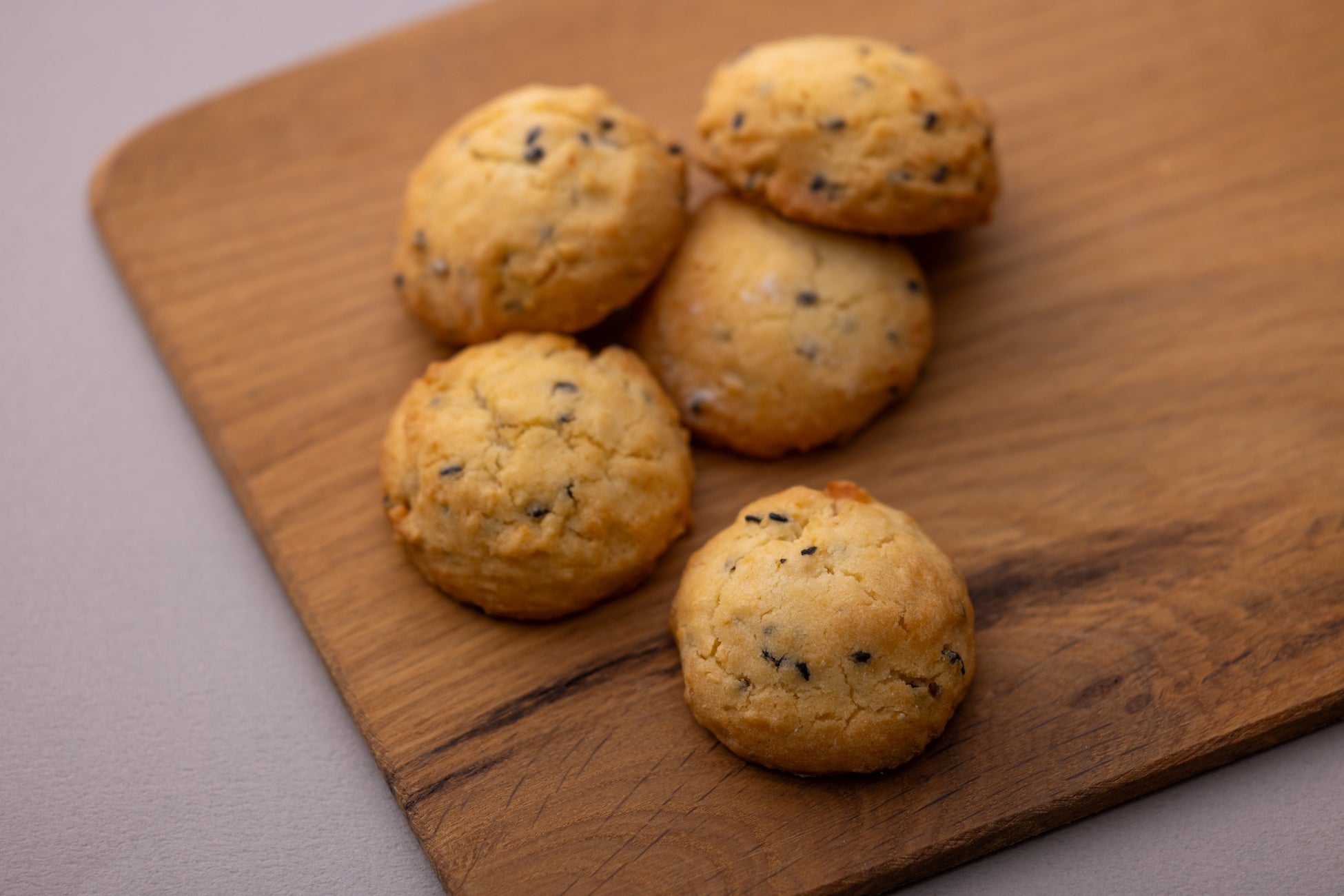 砕いたローストカシューナッツと煎った黒ゴマを練りこんだ贅沢なクッキー。さっくりした食感と香ばしいハーモニーを楽しめます。