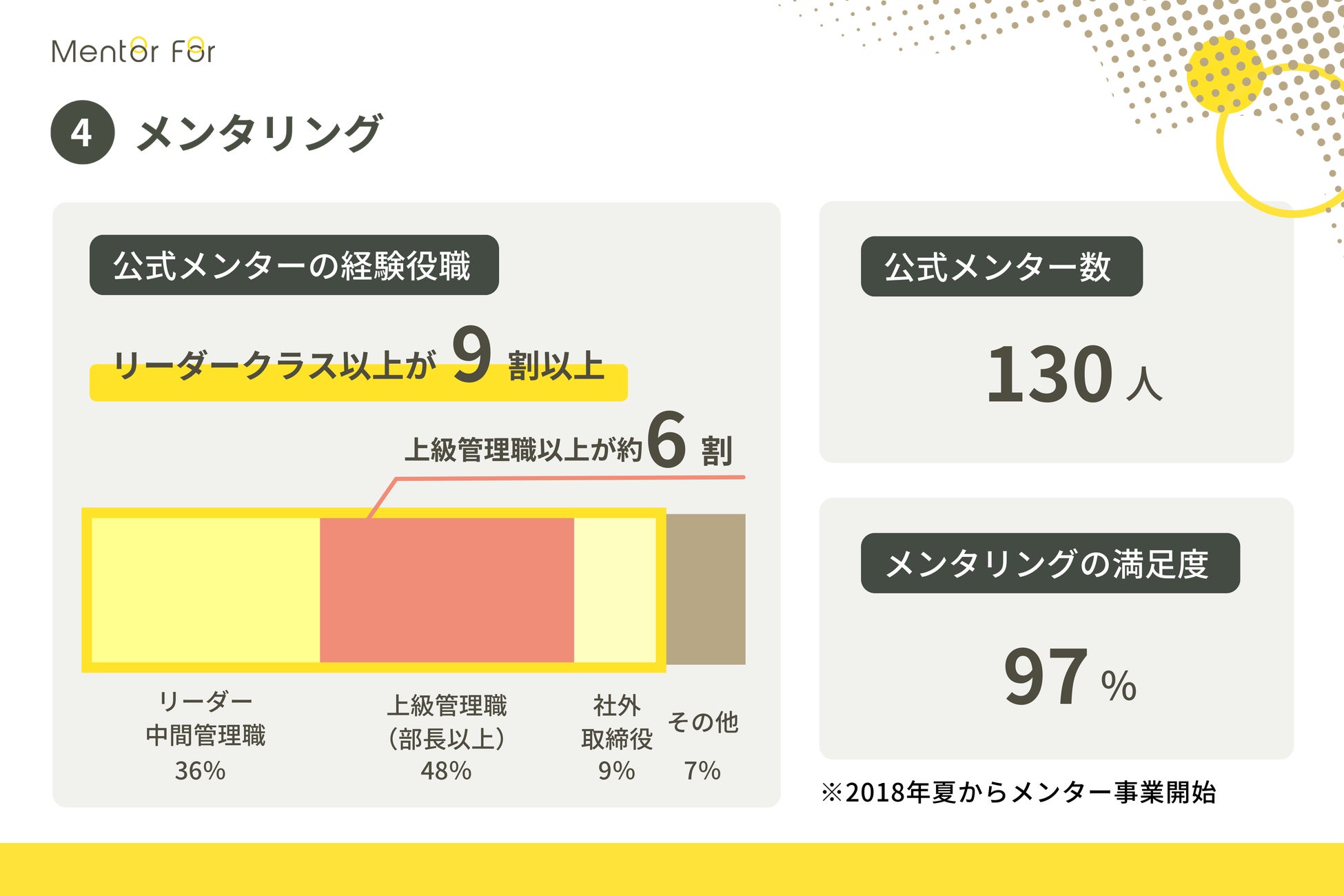 2021年には、メンター事業への覚悟を示すため、株式会社Mentor Forへと社名を変更しました。