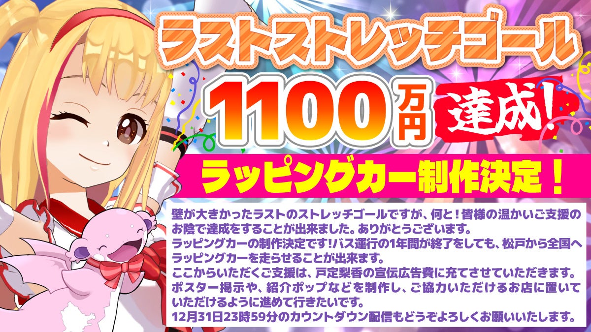 そして12月30日の時点で支援金額が1100万円を超えている。