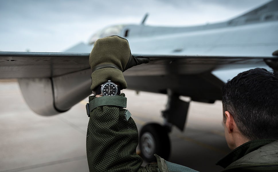 Flygraf Fieger FAF. パイロットが操縦機を握ったまま安全に使用できる高い視認性と操作性を備えたパイロットウォッチです。機械式とクォーツの同時リリース。