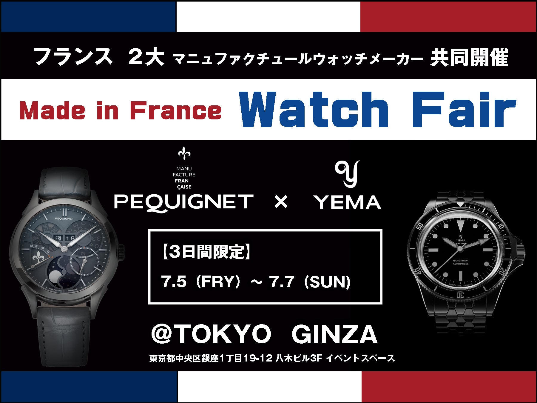 YEMA(イエマ) & PEQUIGNET(ペキニエ)日本初の『Made in France Watch Fair』開催決定!