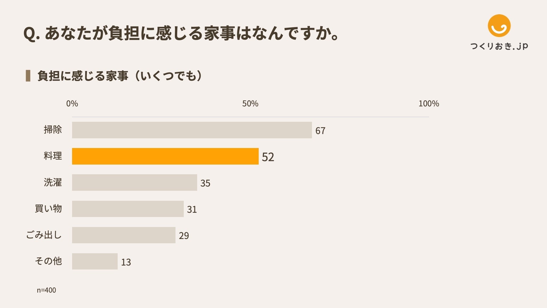 3月8日は国際女性デーです。1975年3月8日に国連で提唱され、来年で50周年を迎えます。この50年で家事のあり方はどう変わったのか。家庭料理の宅配サービス「 つくりおき.jp 」を運営する株式会社Antway(所在地:東京都千代田区、代表取締役社長CEO:前島 恵)は、この度、家事の中でも負担の大きい「料理」について、全国の男女400名を対象に調査を実施しました。統計データとともに解説します。