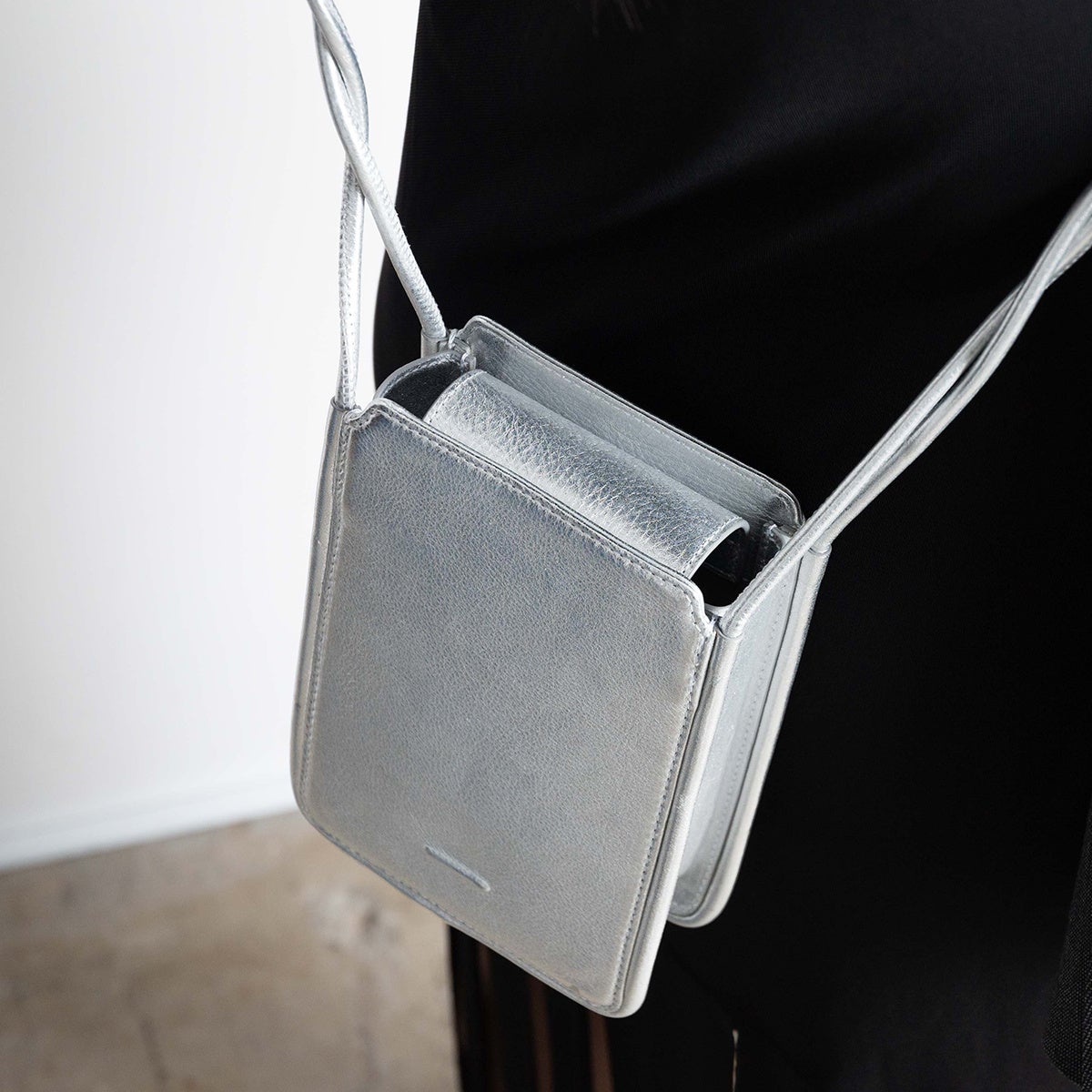 ウォレットバッグ・ウォレットバッグワイドに、メタリックな質感が特長の「シルバー」が新登場。LWG(Leather Working Group)認証の環境に配慮した「箔押しレザー」を採用しました。シルバーの光沢が程よい主張を添える、普段のコーディネートに取り入れやすいカラー。秋冬のコーディネートにクールな雰囲気を加えるワンポイントとして活用いただけます。