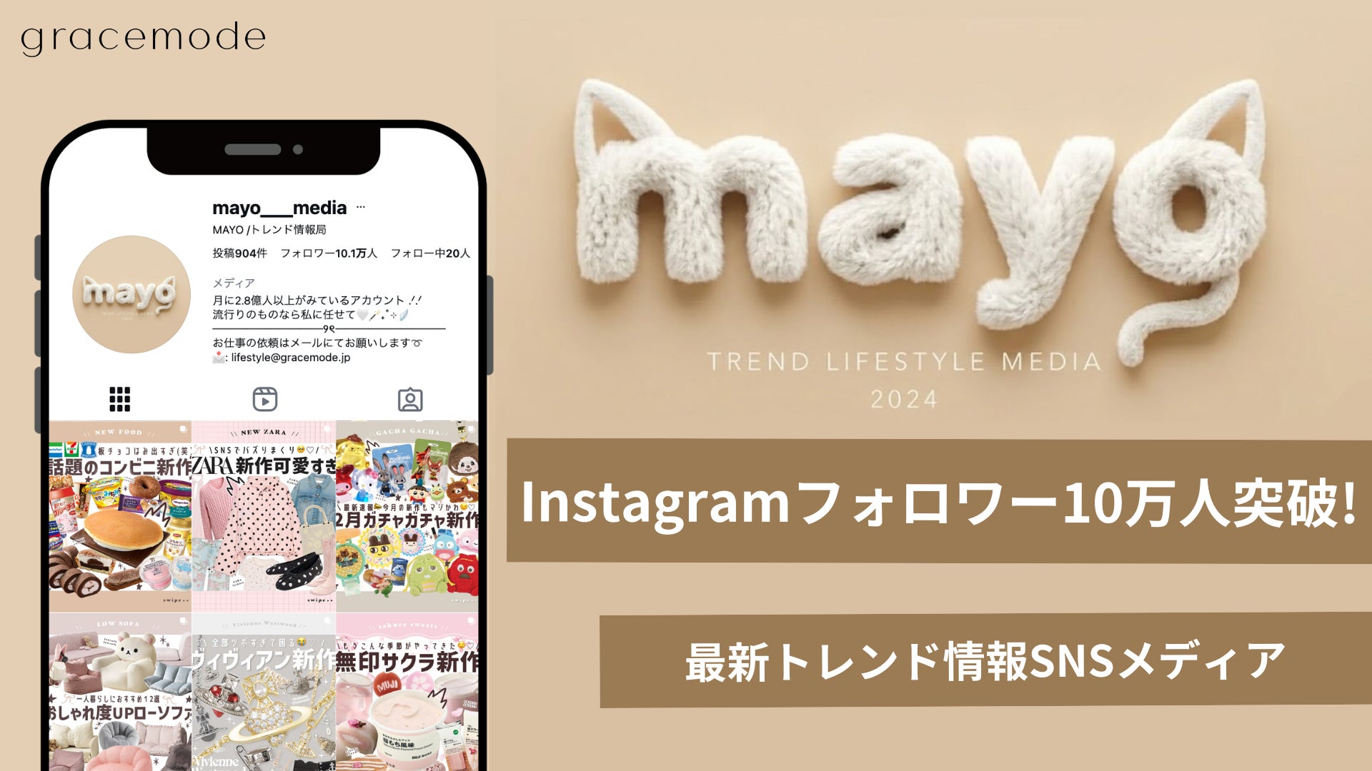 株式会社gracemode(本社:東京都目黒区、代表取締役:木上実乃里)が運営するトレンド情報メディア「MAYO /トレンド情報局」は、2026年2月時点でInstagramのフォロワー数が10万人を突破したことをお知らせいたします。