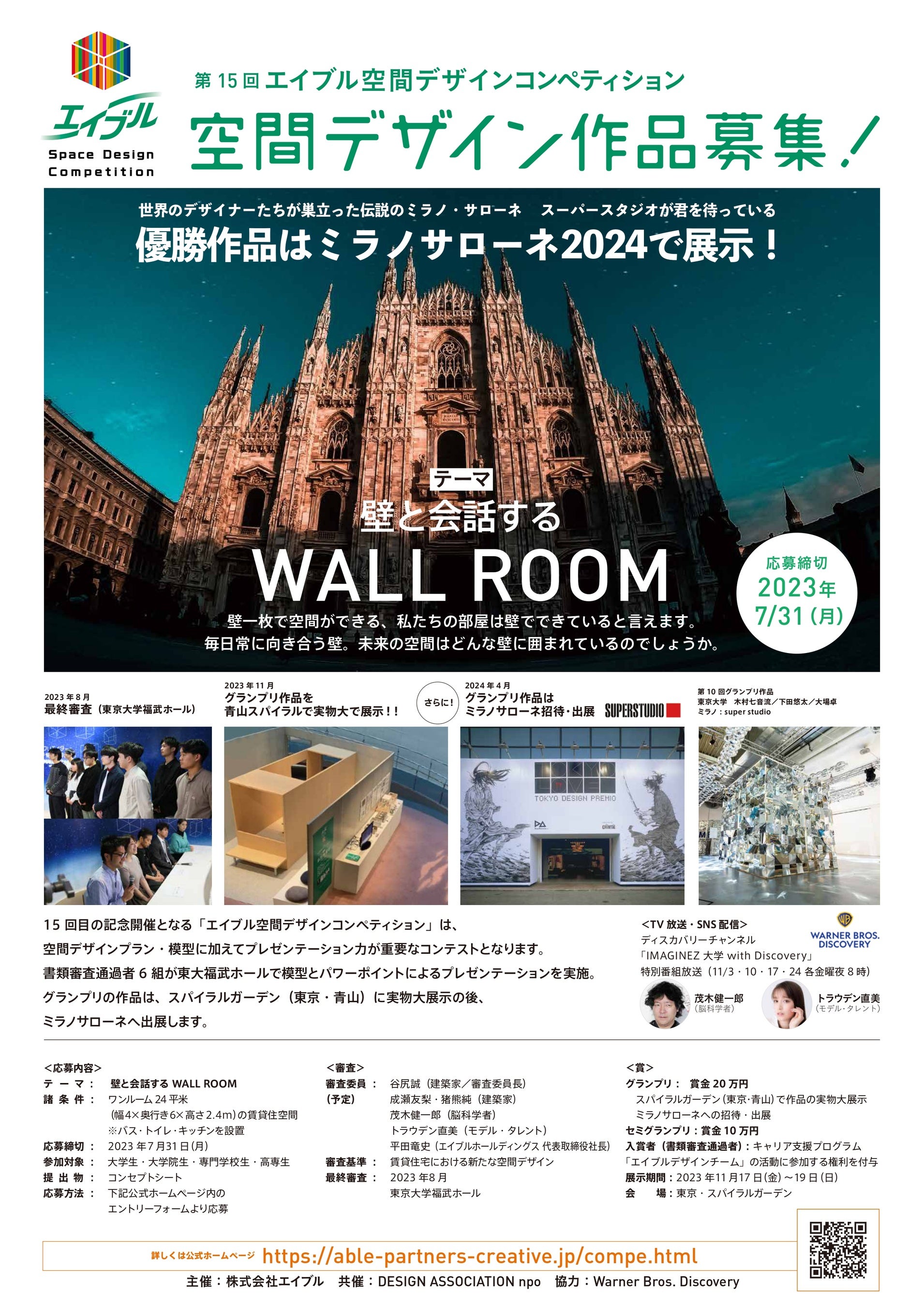 才能ある学生発掘を目的とした空間デザインコンテストの登竜門『第15回エイブル空間デザインコンペティション』