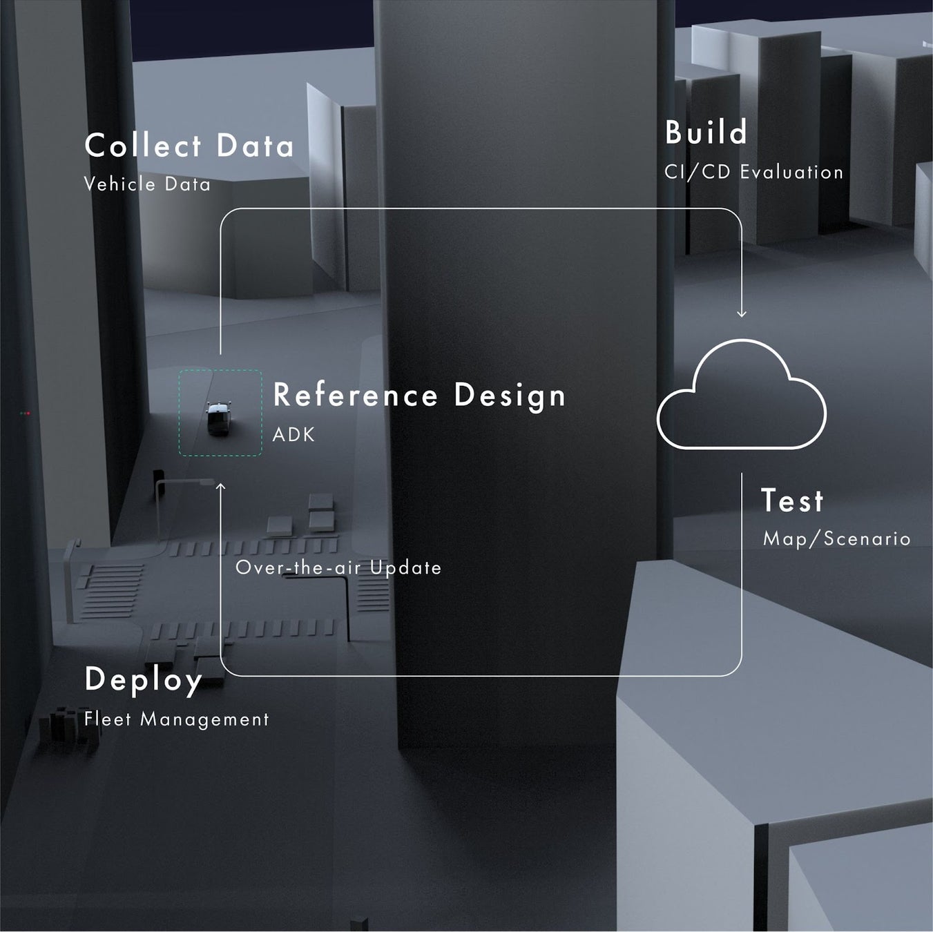 高度な自動運転システムの開発には、認知・判断・操作の自動化にかかるアルゴリズム評価に加え、導入対象の走行環境に最適化されたシステム統合および安全性検証が必要となります。また、運用段階でも、機能更新やデータ管理が求められます。こうした開発運用を効率的に実現するために、ソフトウェアおよびハードウェアを統合するプラットフォームが必要とされており、その提供は自動運転システムの実用化の鍵を握っています。