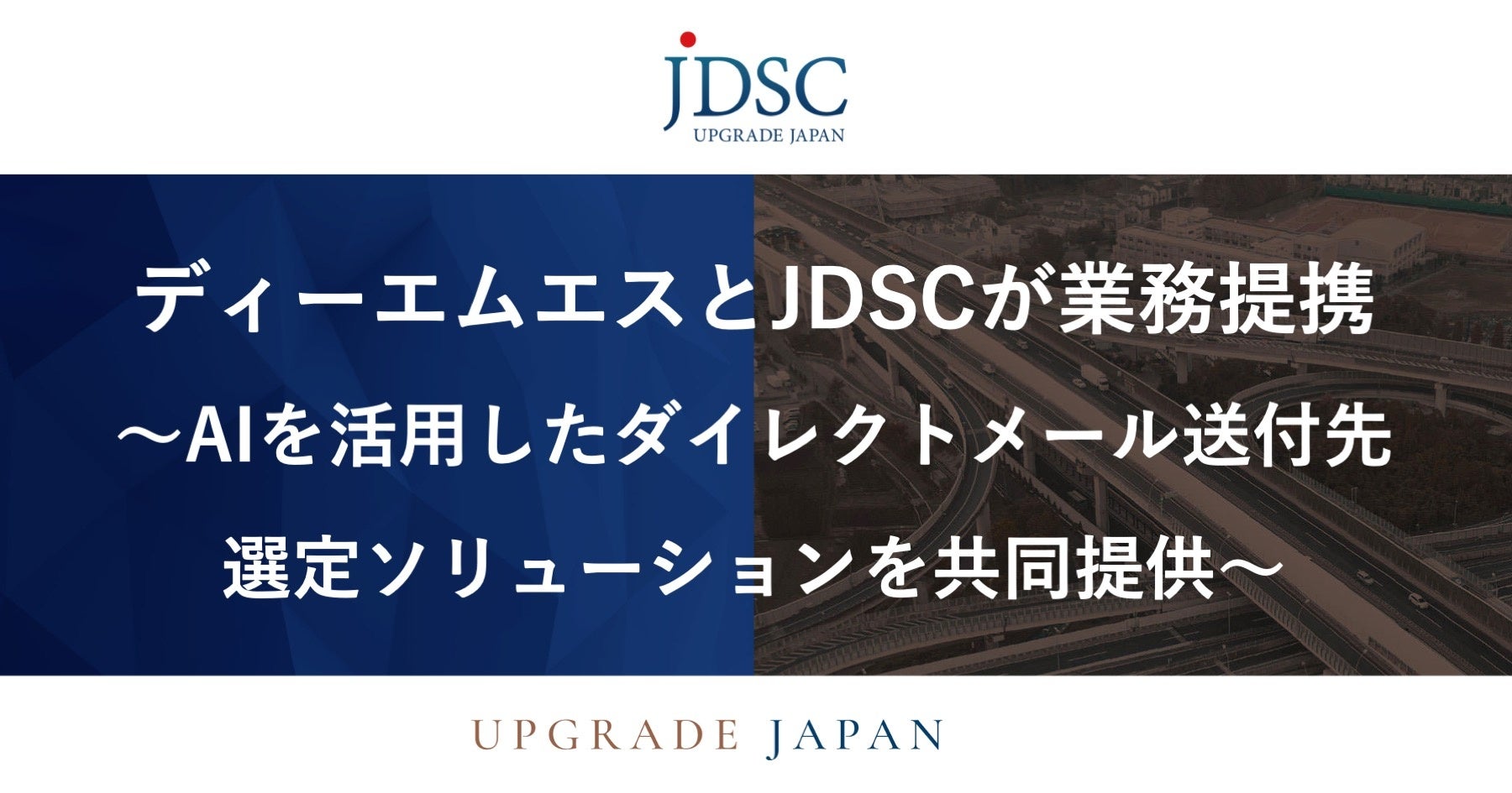 株式会社ディーエムエス(本社:東京都千代田区、代表取締役社長:山本 克彦、東証スタンダード市場:証券コード9782、以下「DMS」)は、株式会社JDSC(本社:東京都文京区、代表取締役:加藤エルテス聡志、東証グロース市場:証券コード4418、以下「JDSC」)との間で、AIの活用によるダイレクトメール事業の高付加価値化を目的に、業務提携することといたしましたので、お知らせいたします。