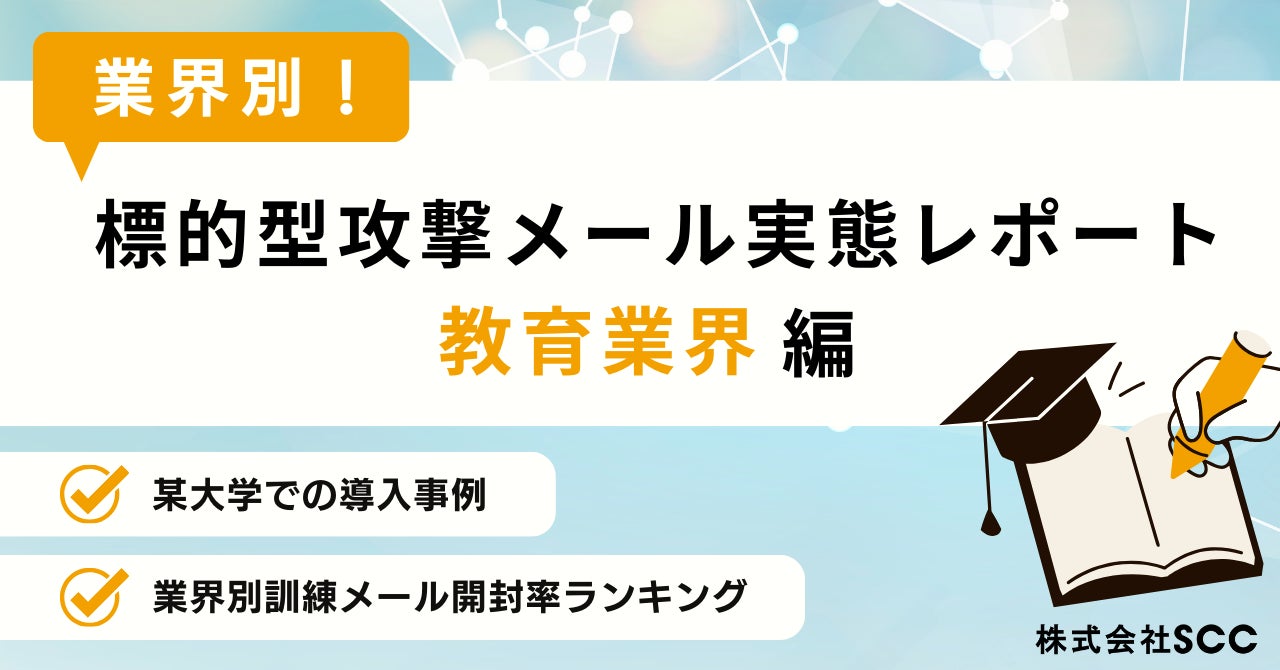 株式会社エスシーシー(本社:東京都中野区、代表:春日 邦彦、以下SCC)は、「教育業界向けの標的型攻撃メール(フィッシングメール)実態レポート」を2025年5月13日に無料公開しました。本資料は、これまで500社を超えるお客様にご利用いただきましたTrapFeel(標的型攻撃メール訓練サービス)の実績データをもとに教育業界の実態をまとめたものです。学校内のセキュリティ対策の現状把握や、今後の訓練計画の検討材料として、ぜひご活用ください。