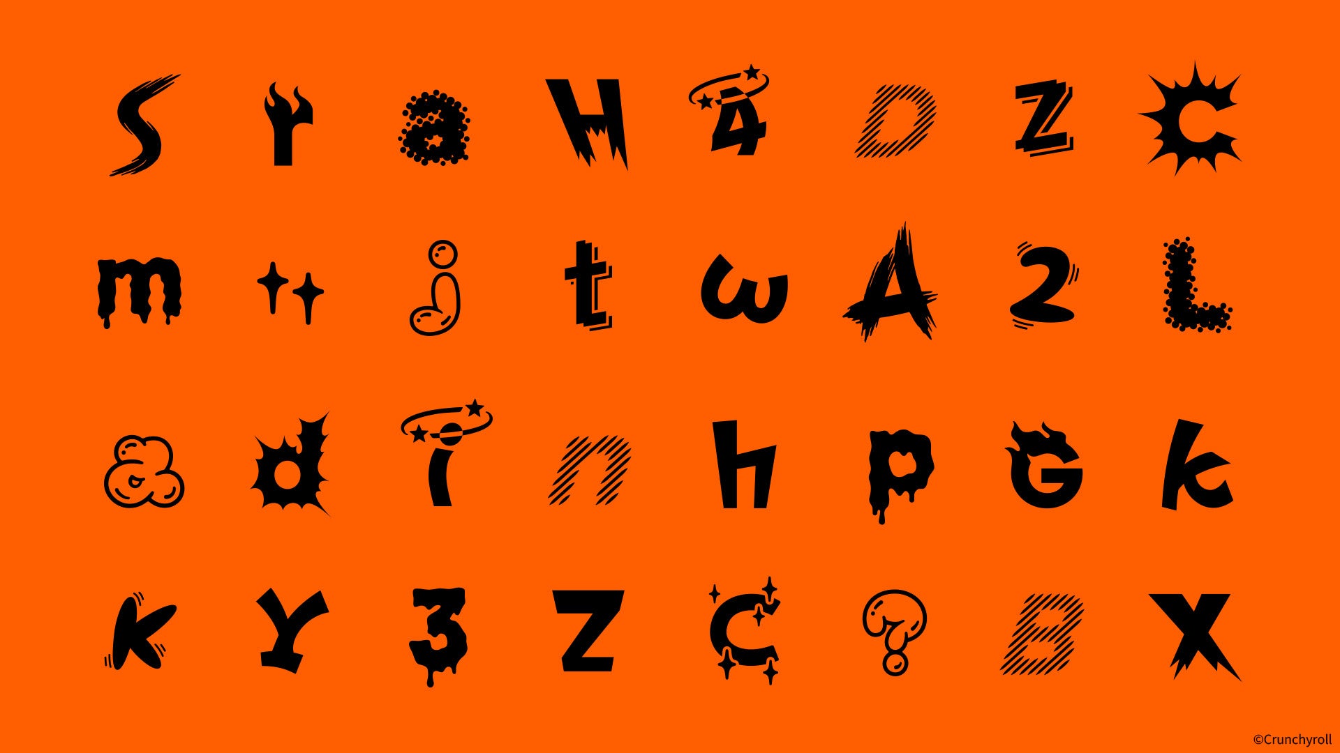 漫画やアニメ特有の"漫符"や"オノマトペ"など16種類の表現にインスパイアされた100種類以上の独自のデザインフォントをCrunchyrollと共に制作しました。Crunchyrollの新たなブランドフォント(ATYP)と組み合わせて使用することで、さまざまな場面でCrunchyrollが志す漫画やアニメの持つ楽しさをシンプルに表現できる仕組みとなっています。