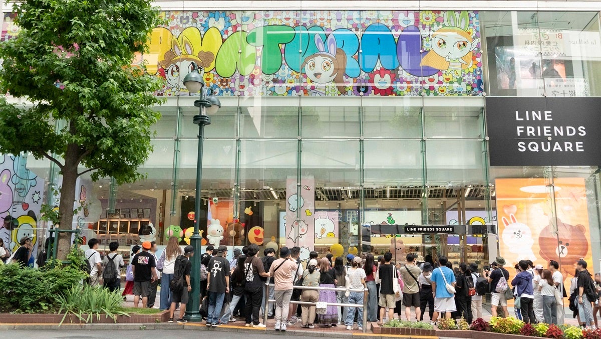 LINE FRIENDSは、世界中で旋風を巻き起こしている5人組グループNewJeansと、昨年よりNewJeans公式商品のビジネス提携をスタートし、ユニークで特別感あふれる商品を展開しています。そして本店舗のオープンにあたり、期間限定のNewJeans関連イベントをご用意しました。村上隆氏と藤原ヒロシ氏、両巨匠とのコラボレーションにLINE FRIENDSのクリエイティブ力が加わり、特別感あふれる素敵なアイテムとPOPUP空間が誕生しています。事前予約制のB1Fのメディアゾーンとショッピングエリアは、受付開始から数分で初日の540枠が全て埋まり、数日ですべての予約枠が埋まりました。