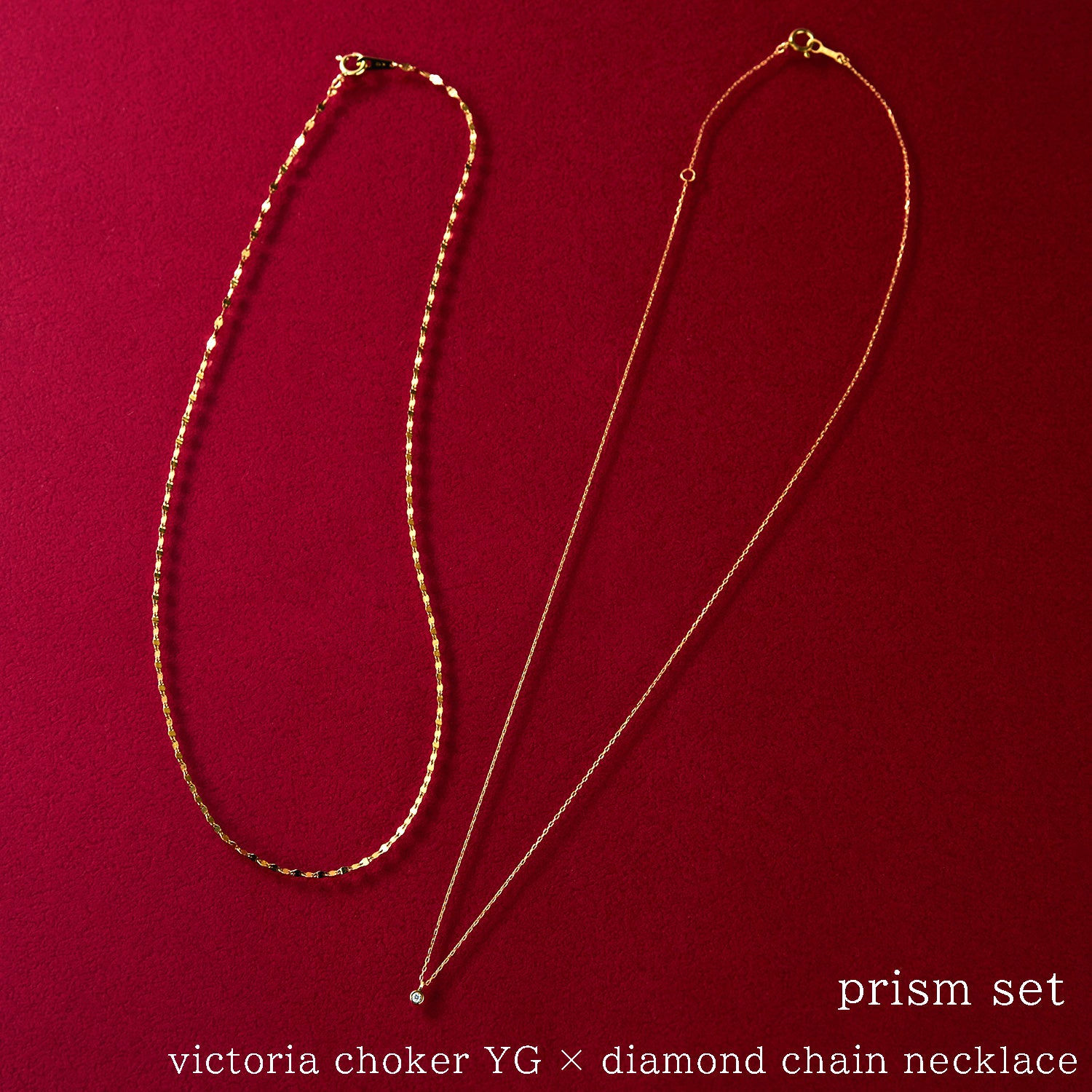 強く輝く一粒ダイヤモンドに合わせたのは、光を面で受けて煌めくvictoria choker