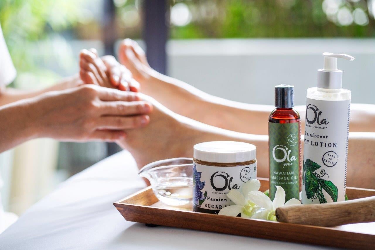 “ホオマカ”とは、ハワイ語で「始まり、新しい道」を意味します。新しい季節の始まりにパワーがよみがえるアロハスピリットに溢れるトリートメントでは、爽やかなパッションフルーツ配合のフットスクラブで五感を呼び覚まし、ロミロミフルボディではハワイアングァバスティックで足元より冬の間の滞りを浄化します。ハワイ島でマナ(精霊)が宿るとされる花や植物より厳選された品質成分のプロダクトを使用し、心身を心地よく満たしてリフレッシュしていだけるトリートメントです。