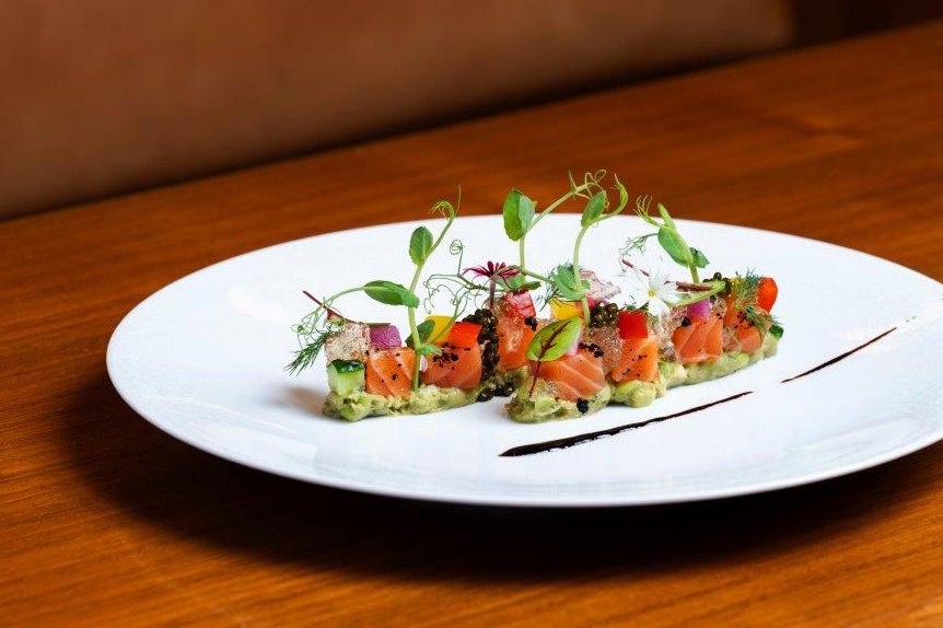 サーモンのロミロミ、メカジキのグリル、沖縄県産あぐー豚ロースのハワイアンポークソテーなどハワイアンフードと沖縄の食材が融合するコースメニューに仕立てました。