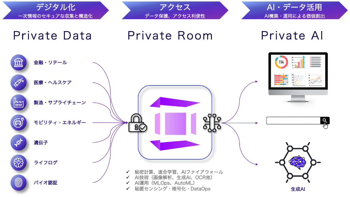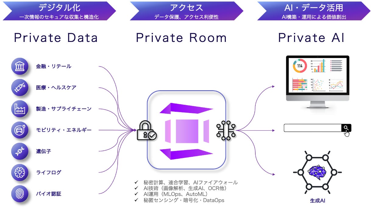 昨今、生成AI(Generative AI)が大きな話題となっており、各企業はその可能性に注目しています。生成AIは、与えられたデータから新たな情報やコンテンツを生成する能力を持ち、AI・データ活用やDX推進テーマの中で広範な応用が期待されています。特に、企業内のプライベートデータを活用することで、業務改善・競争力向上や市場変化への適応など、様々な利点が見出されています。一方でプライベートデータには、情報の秘匿性・セキュリティや法的規制・プライバシー等の制約により容易に活用できません。
