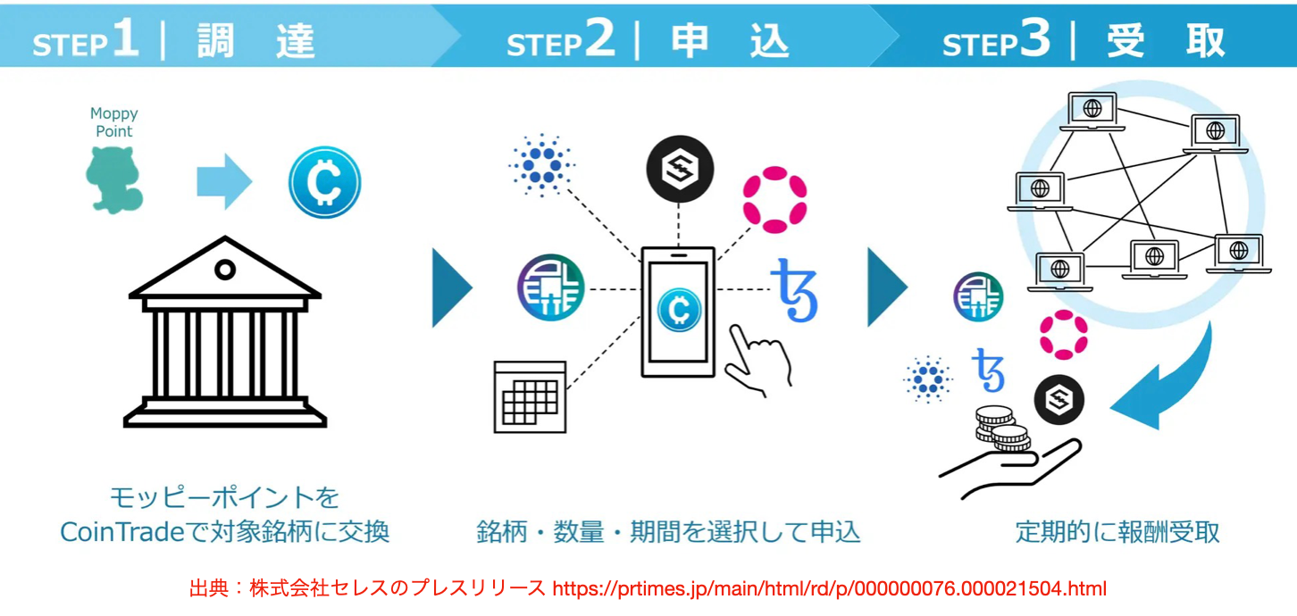 <ポイントから暗号資産に交換して、ステーキングサービスに参加する>