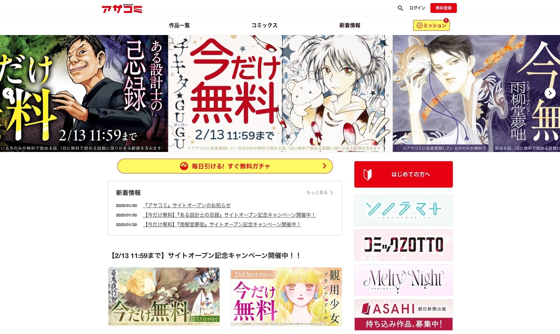 「アサコミ」 オープンキャンペーン