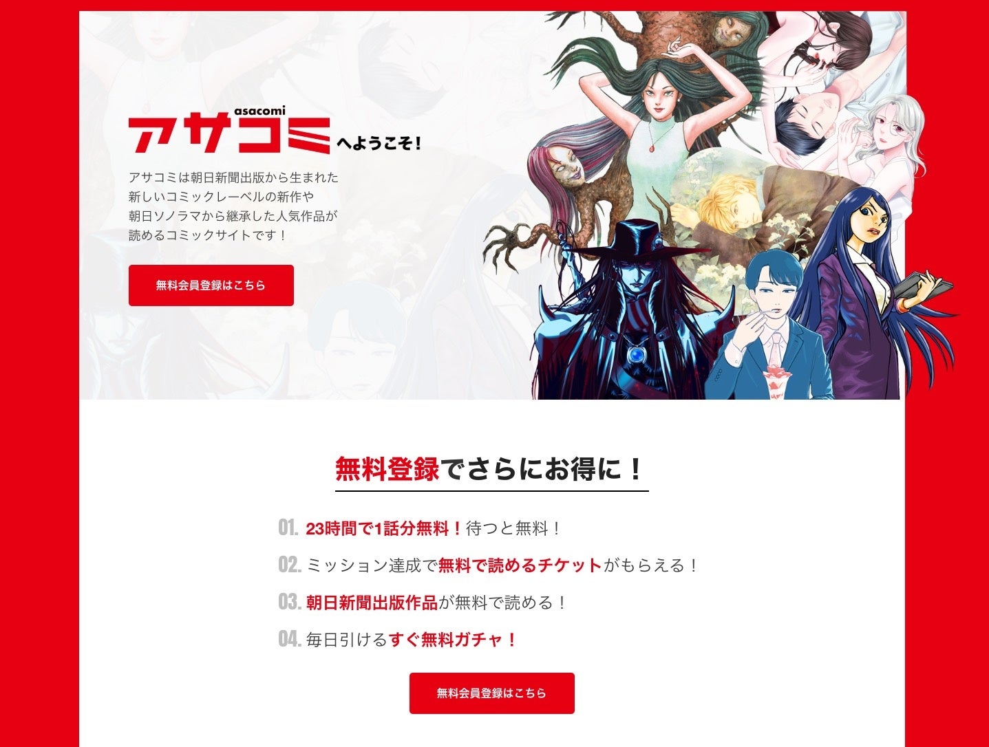 『花四段といっしょ』、『吸血鬼ハンターD 薔薇姫』、『伊藤潤二自選傑作集 Dark Colors』など総合マンガサイト「アサコミ」 誕生!システムは「コミチ+」!